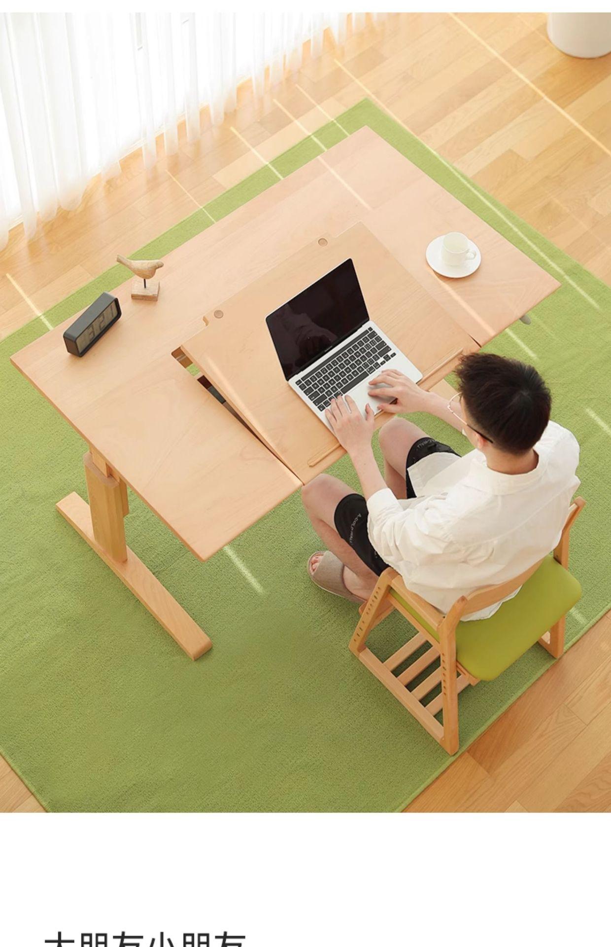 Mesa de Estudio para Niños, Escritorio para Estudiante de Primaria, Mesa Elevable, Escritorio de Escritura de Madera Maciza, Juego de Escritorio y Silla para el Hogar