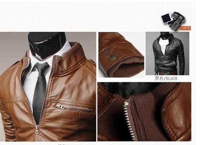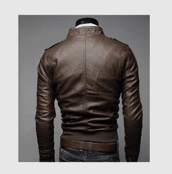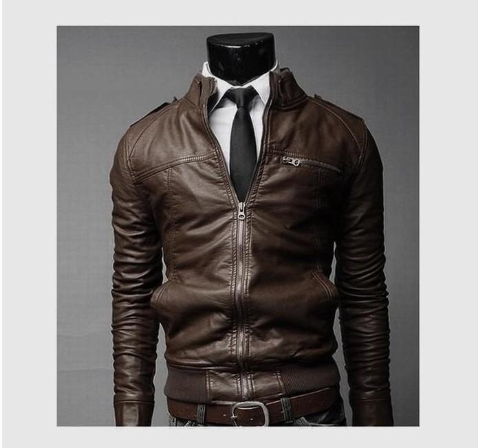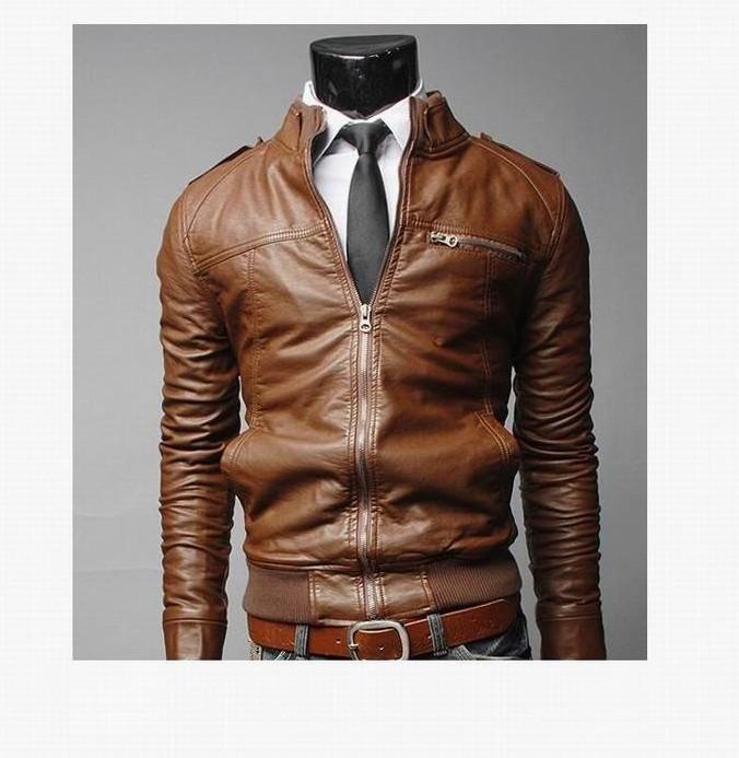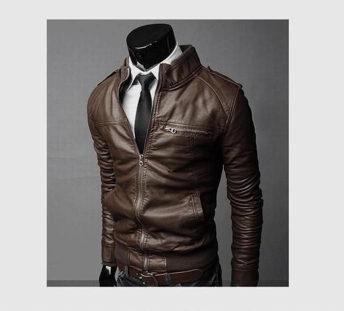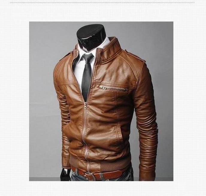 Chaqueta de cuero de primavera y otoño 2023 para hombre, corte entallado, cuello vertical, informal, de negocios, para motocicleta, chaqueta de cuero de moda coreana para hombre.
