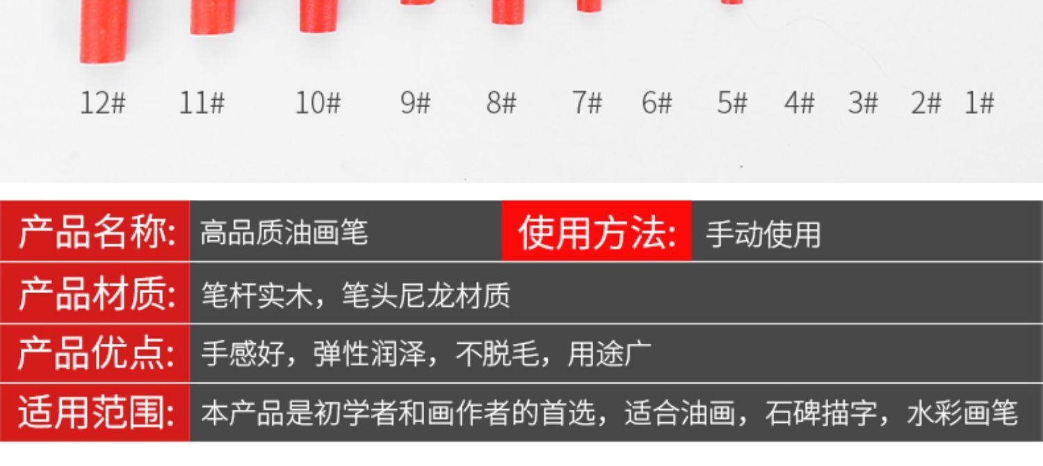 Pincel de óleo Material de pintura Pincel de nailon Gouache Acuarela Pincel de cabeza plana Pincel industrial Pincel Pluma Pincel