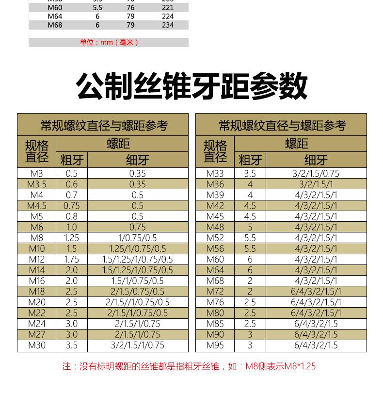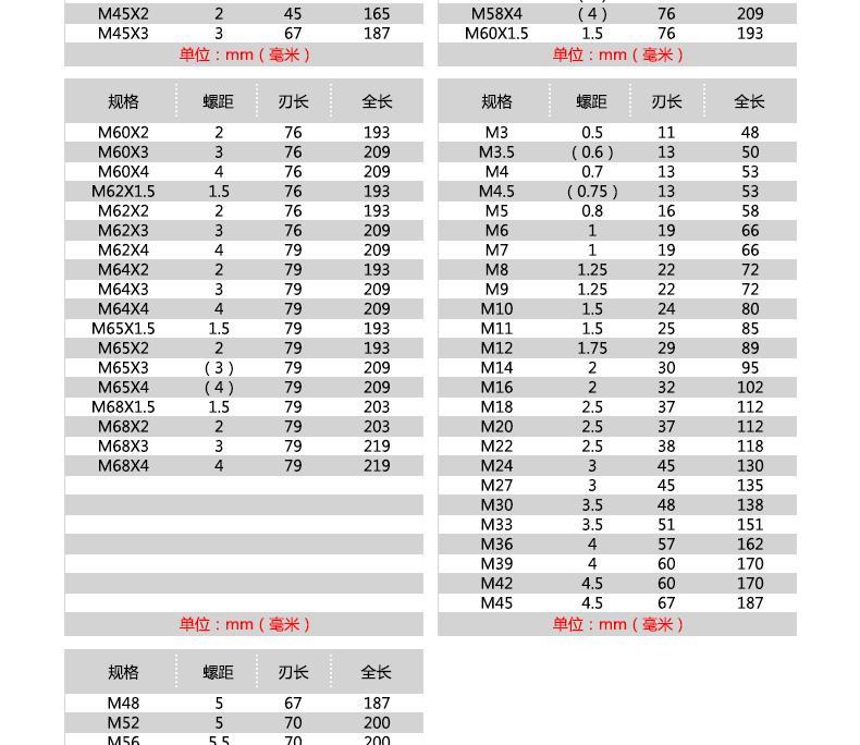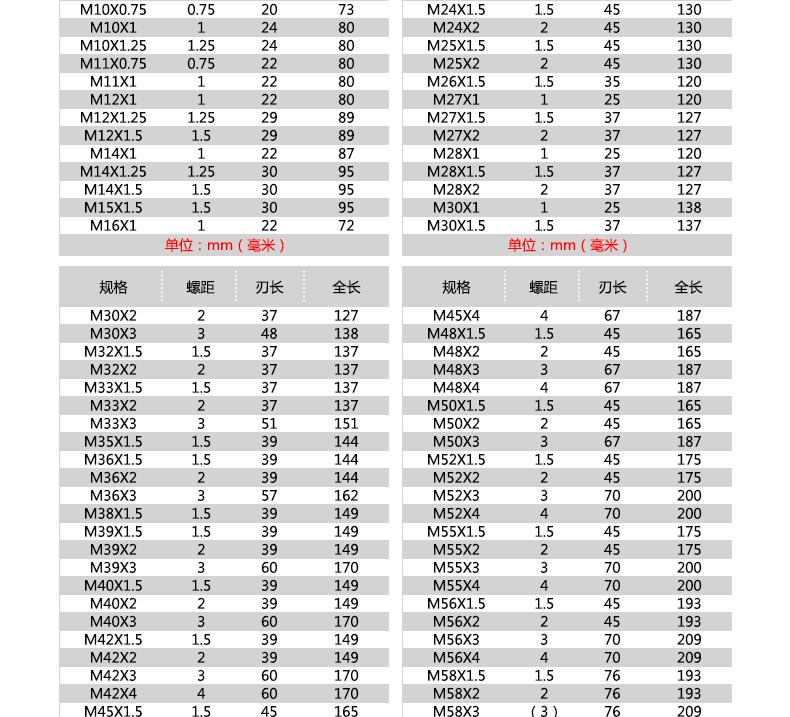 M4 [standard teeth], M22 [standard teeth], M27 [standard teeth], M6*0.75 [fine teeth], M8*1【fine teeth】, M12*1...