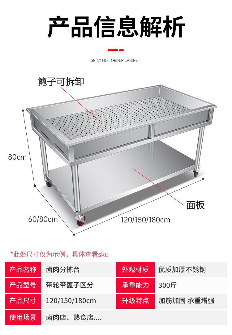 Carne marinada comida cocinada mesa de clasificación mesa de trabajo de acero inoxidable aire carne marinada pato productos verduras marinadas drenando clasificación carro ahora marinado ahora pescando