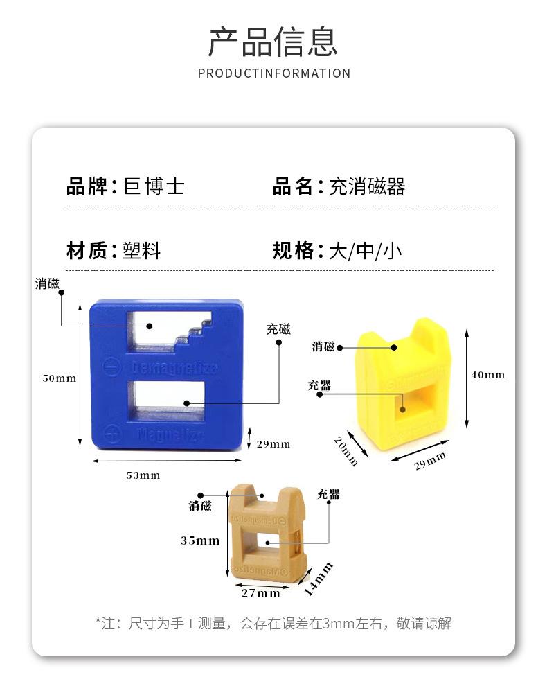 Small magnetizer (random color), Medium magnetizer (random color), Large magnetizer (random color)