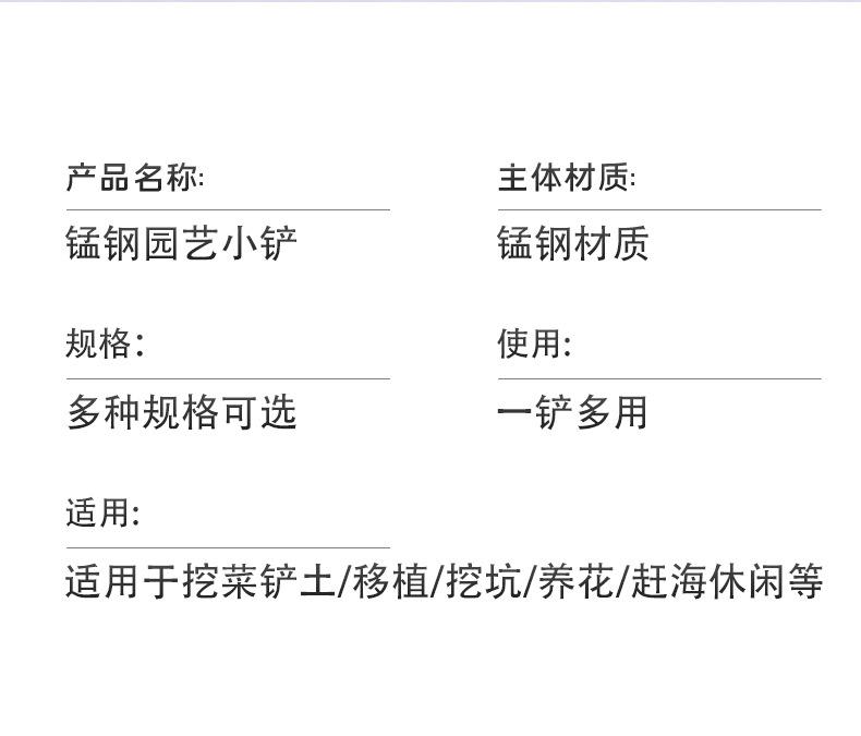 Widely used in weeding, catching the sea, planting flowers, loosening soil, growing vegetables,