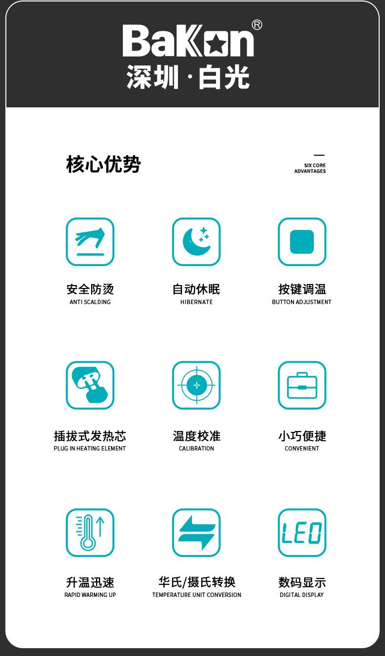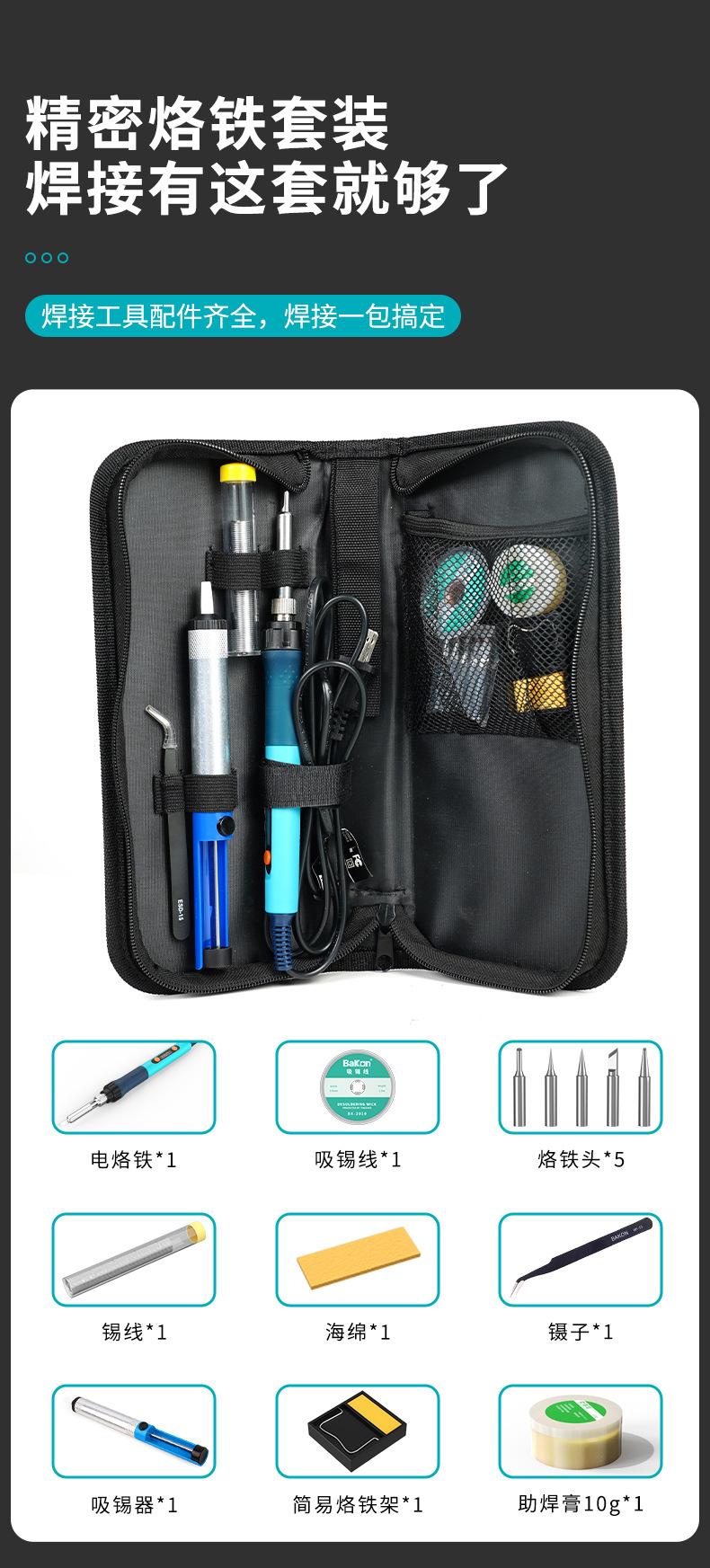 Bakon Luz Blanca Nuevo Bk606A Soldador Juego de Soldadura Alta Potencia 90W Portátil Temperatura Ajustable Juego de 13 Piezas
