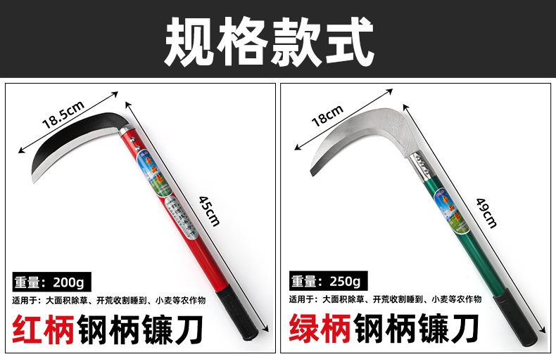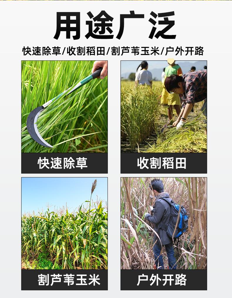 Machete de corte agrícola con hoz, desherbador, cortador de árboles al aire libre, cortador de césped con doble hoz, cuchillo pequeño y económico de acero al manganeso.