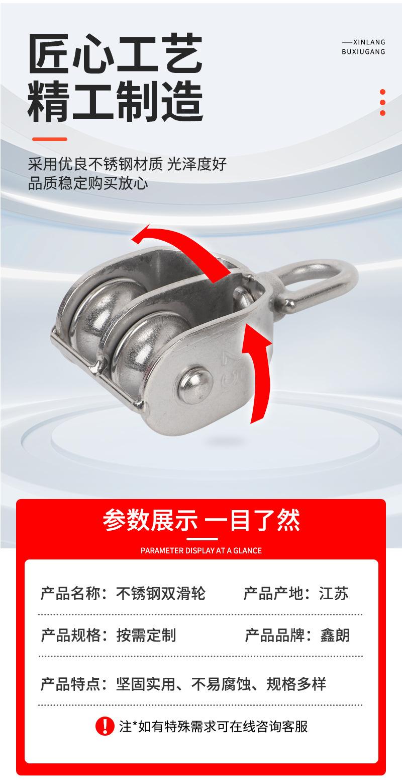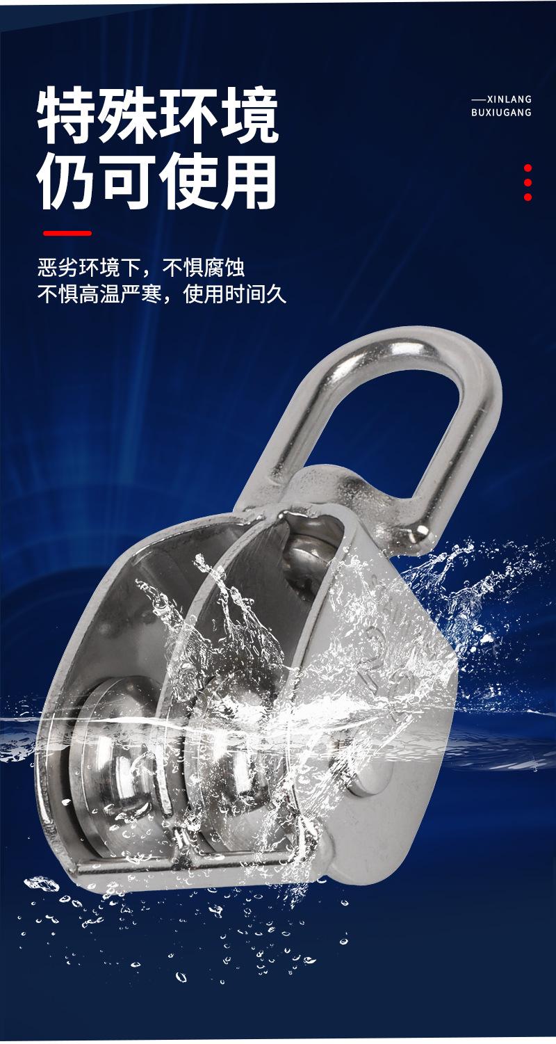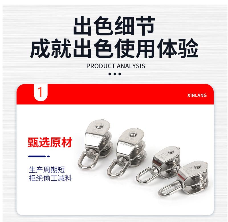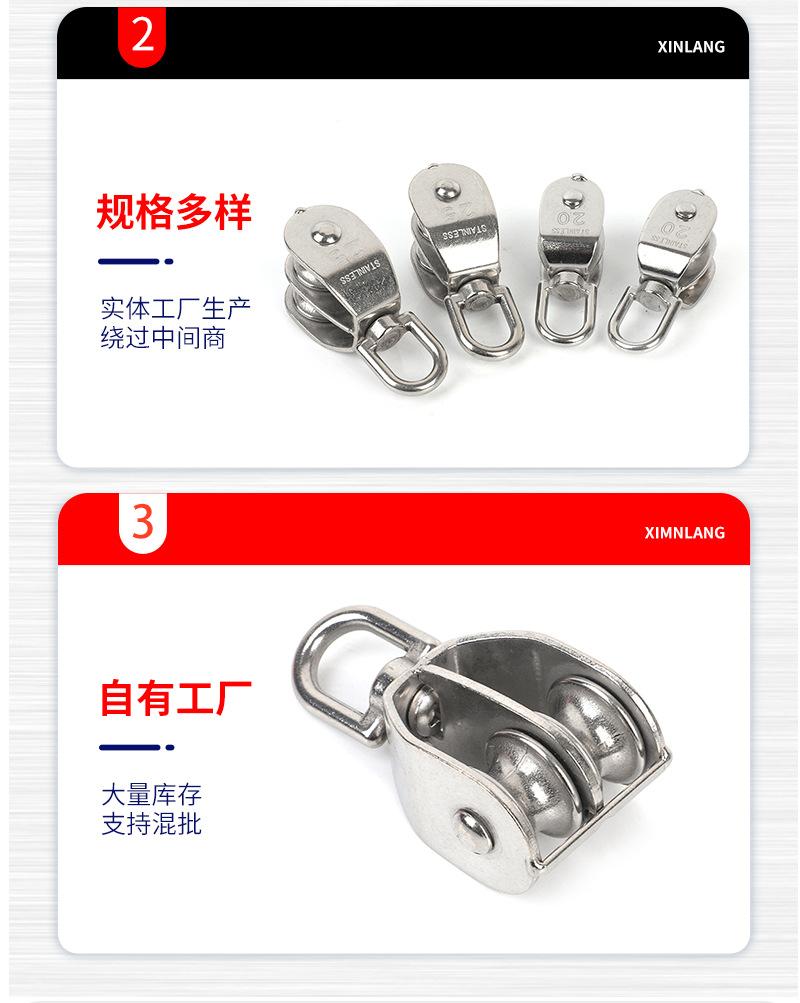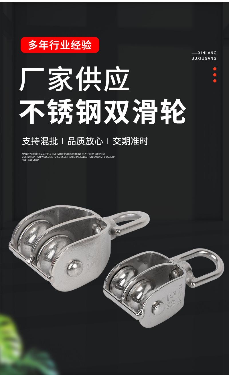 Polea de acero inoxidable 304, venta al por mayor, polea colgante de cable de acero, polea de rodamiento, polea doble de elevación de acero inoxidable