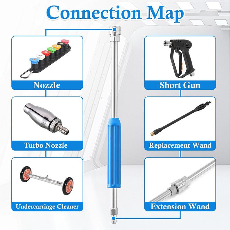 Compra Lanza de extensión para hidrolimpiadora de alta presión transfronteriza, lanza de limpieza de acero inoxidable con mango, 30 grados, lanza de extensión de conexión rápida 1/4 al por mayor en Joom.pro