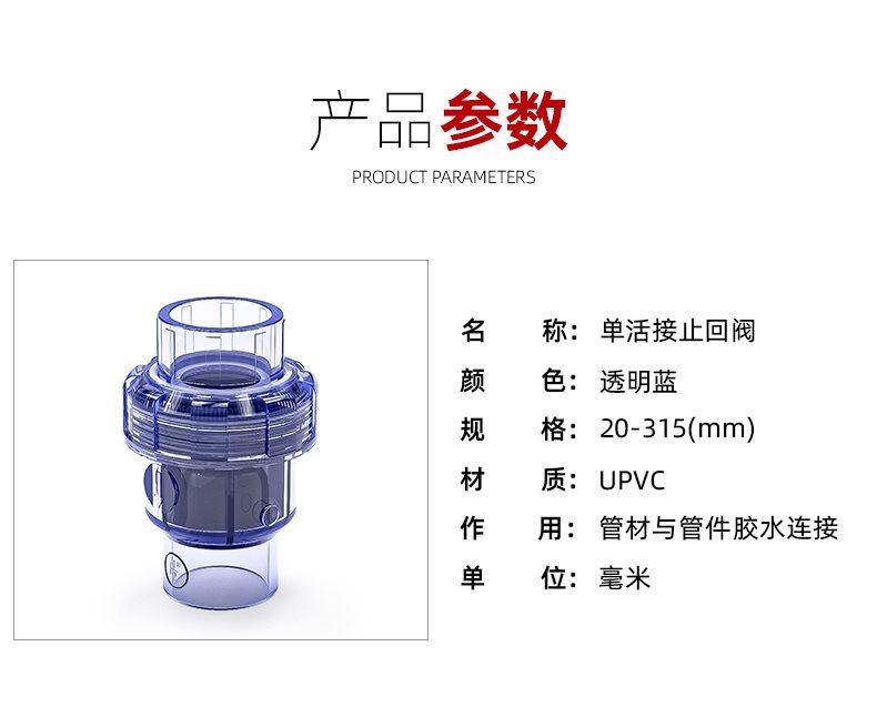 Válvula de retención de unión simple de PVC transparente para pecera, válvula de retención unidireccional de plástico, válvula de retención de 1, válvula de parada de agua de 2 pulgadas 20 25 32 40
