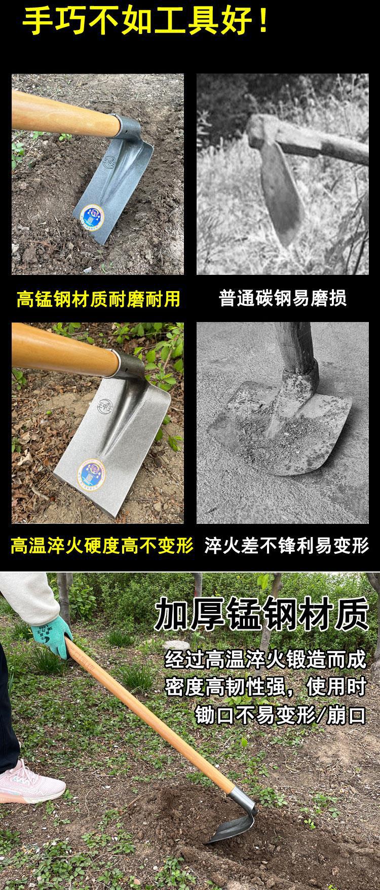 Azada para cultivo de hortalizas en el hogar Azada de franja agrícola Azada de acero al manganeso para excavar el suelo Herramientas agrícolas Azada para desherbar Excavación de raíces de árboles Aflojamiento del suelo Recuperación de tierras