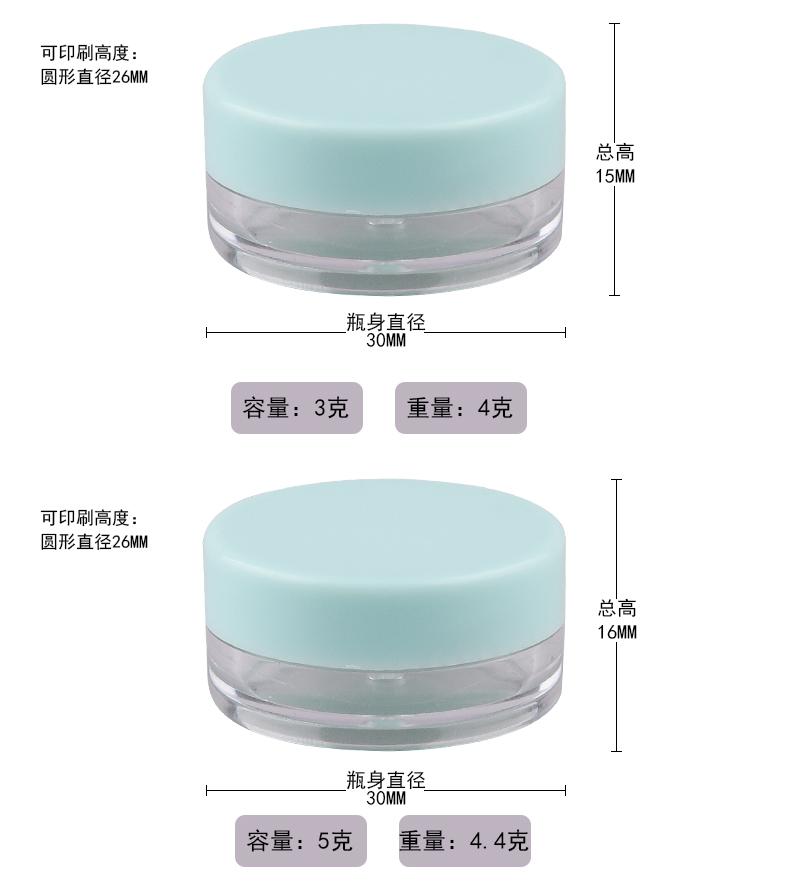 Botella redonda de crema de 3G/5G, caja de muestra de prueba, botella, subcaja cosmética, botella pequeña redonda