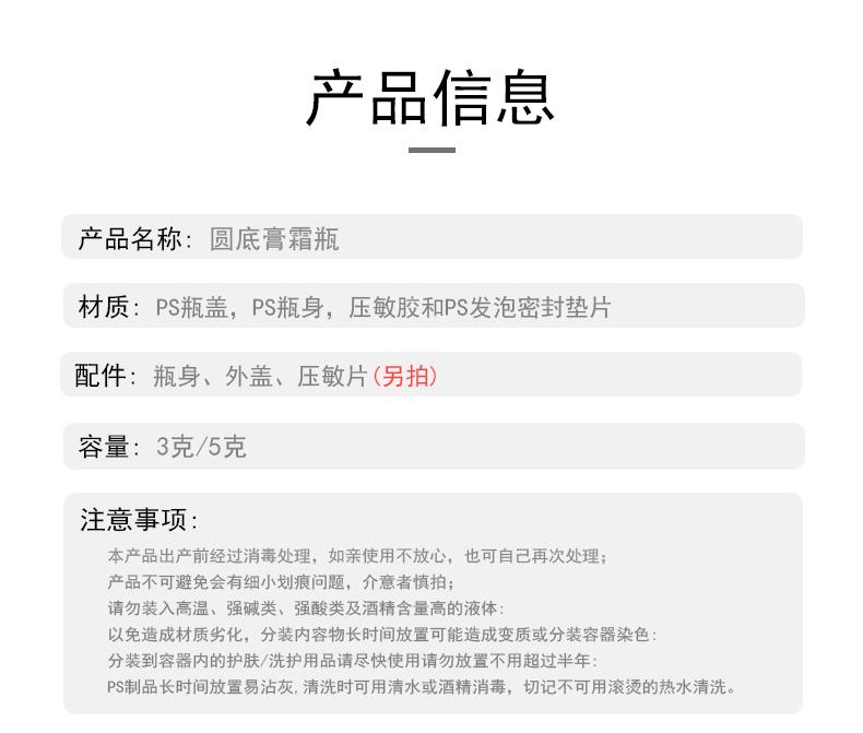 Compra Botella redonda de crema de 3G/5G, caja de muestra de prueba, botella, subcaja cosmética, botella pequeña redonda al por mayor en Joom.pro