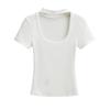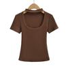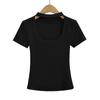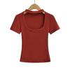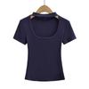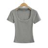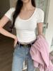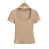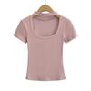 Camiseta de manga corta con cuello cuadrado y colgante de Spice Girl para mujer, blusa adelgazante, sexy y pura, de corte entallado, novedad de verano de 2024