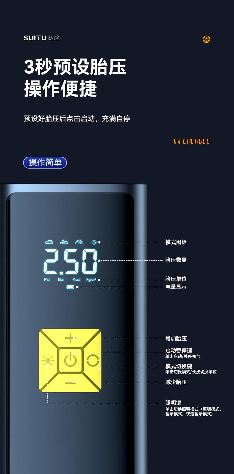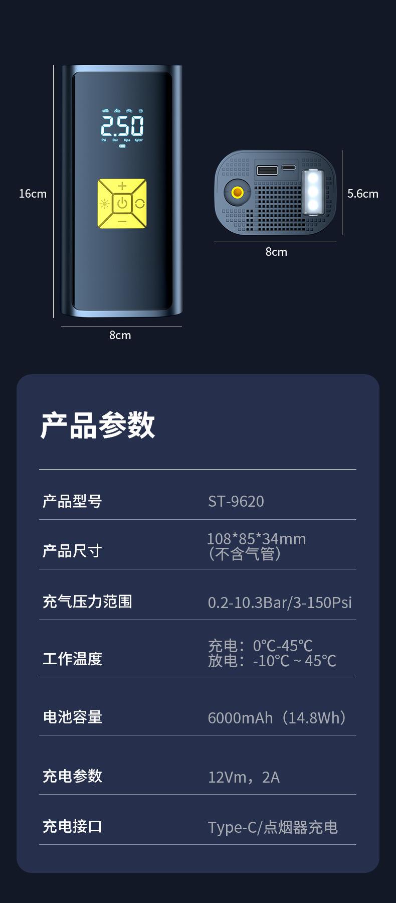 [ST-9620A] portable air pump-Wired, [ST-9620B] dual-purpose wireless portable air pump + TYPE-C car charging l...