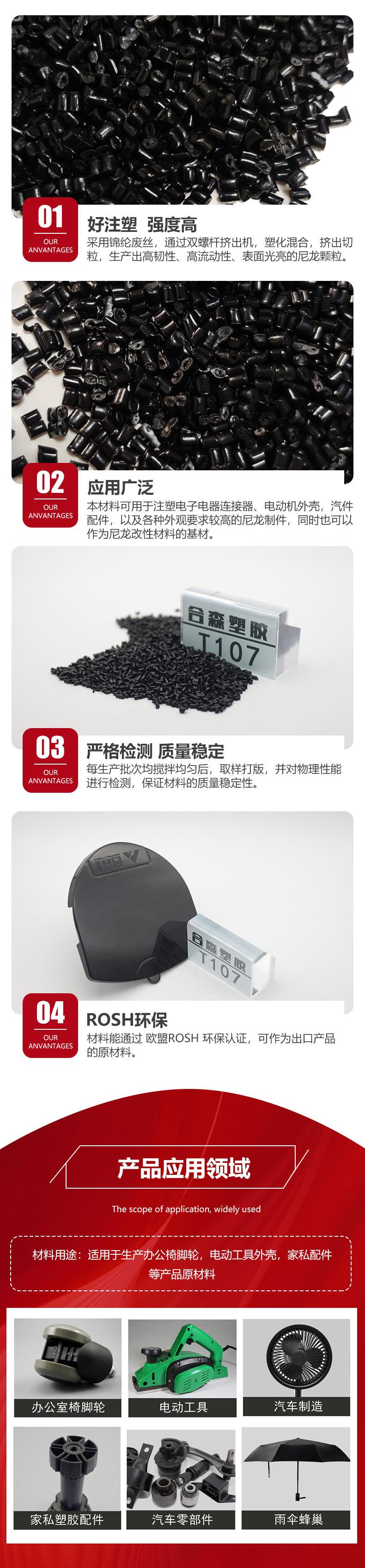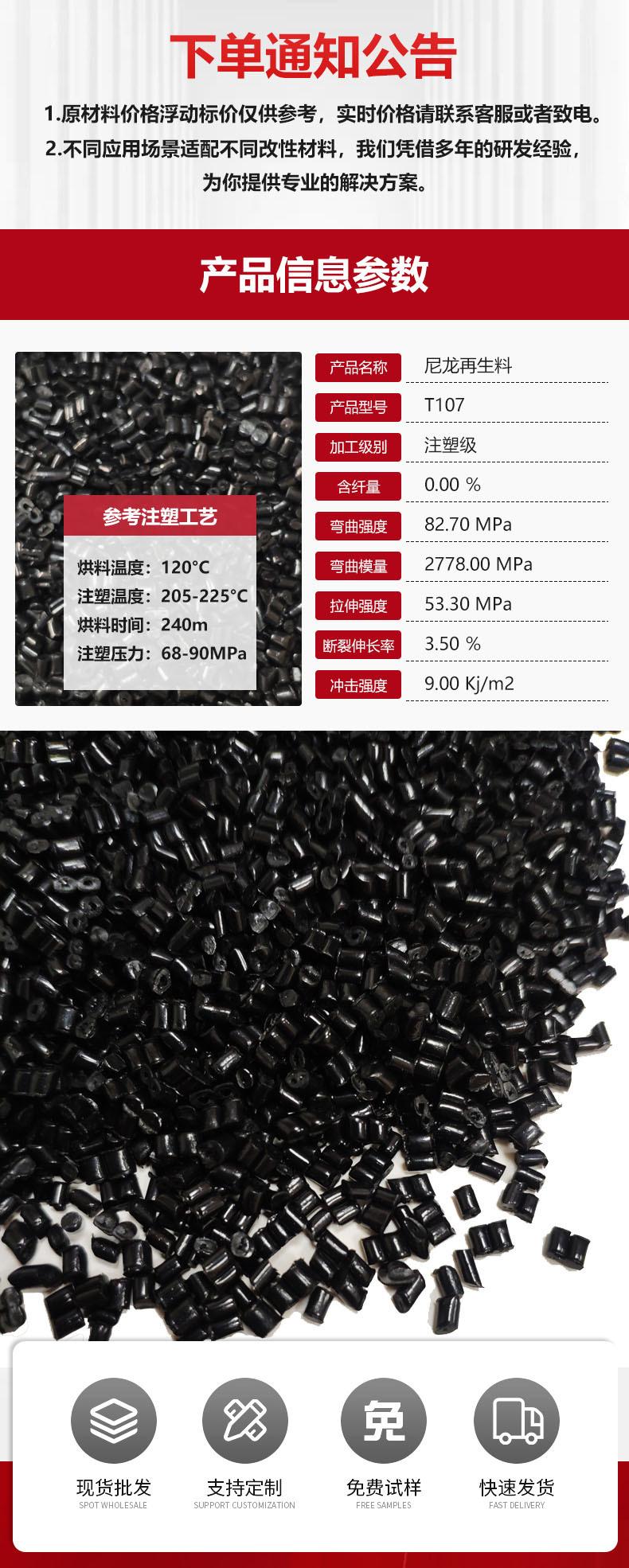 Pa6107Bk Material de Nailon Negro para Moldeo por Inyección, Materia Prima Pa6 con Alto Brillo y Alta Fluidez, Material de Nailon Reciclado
