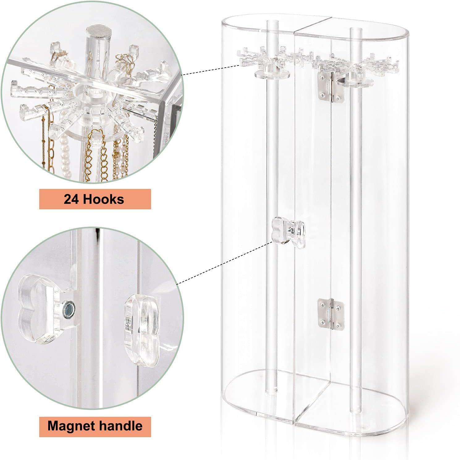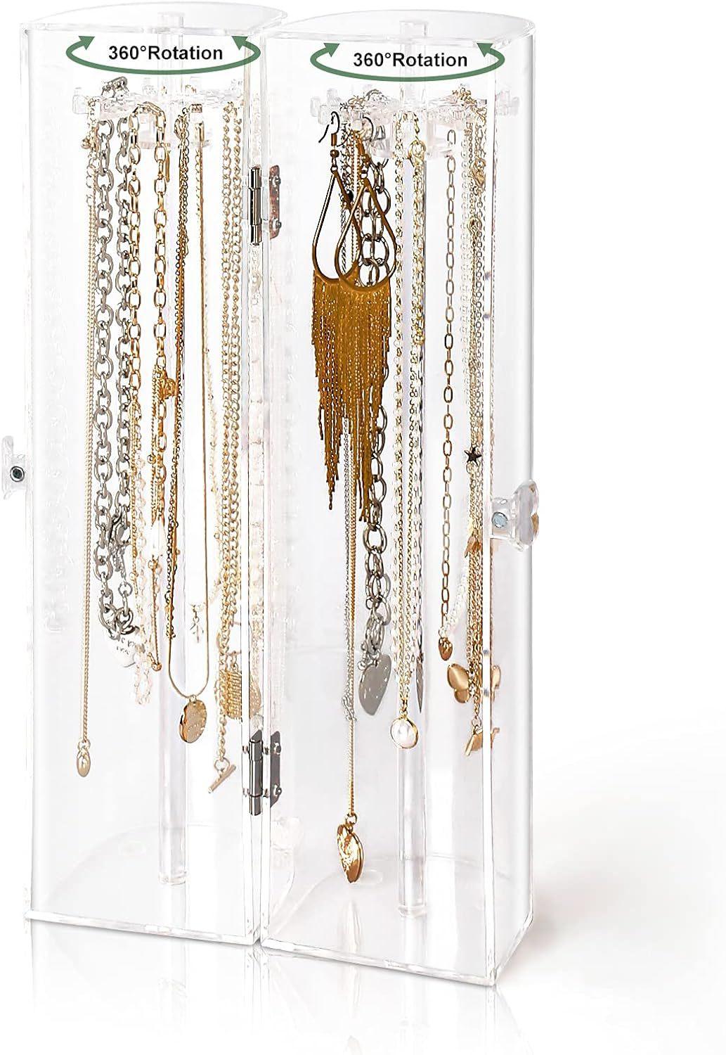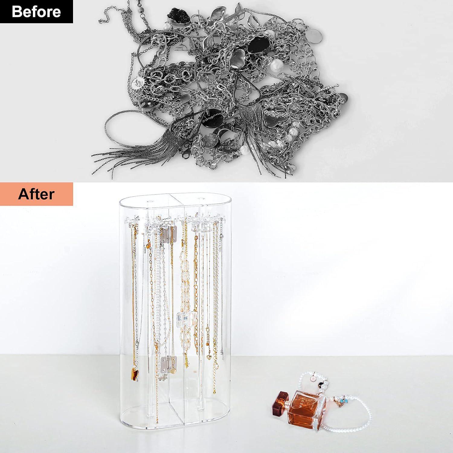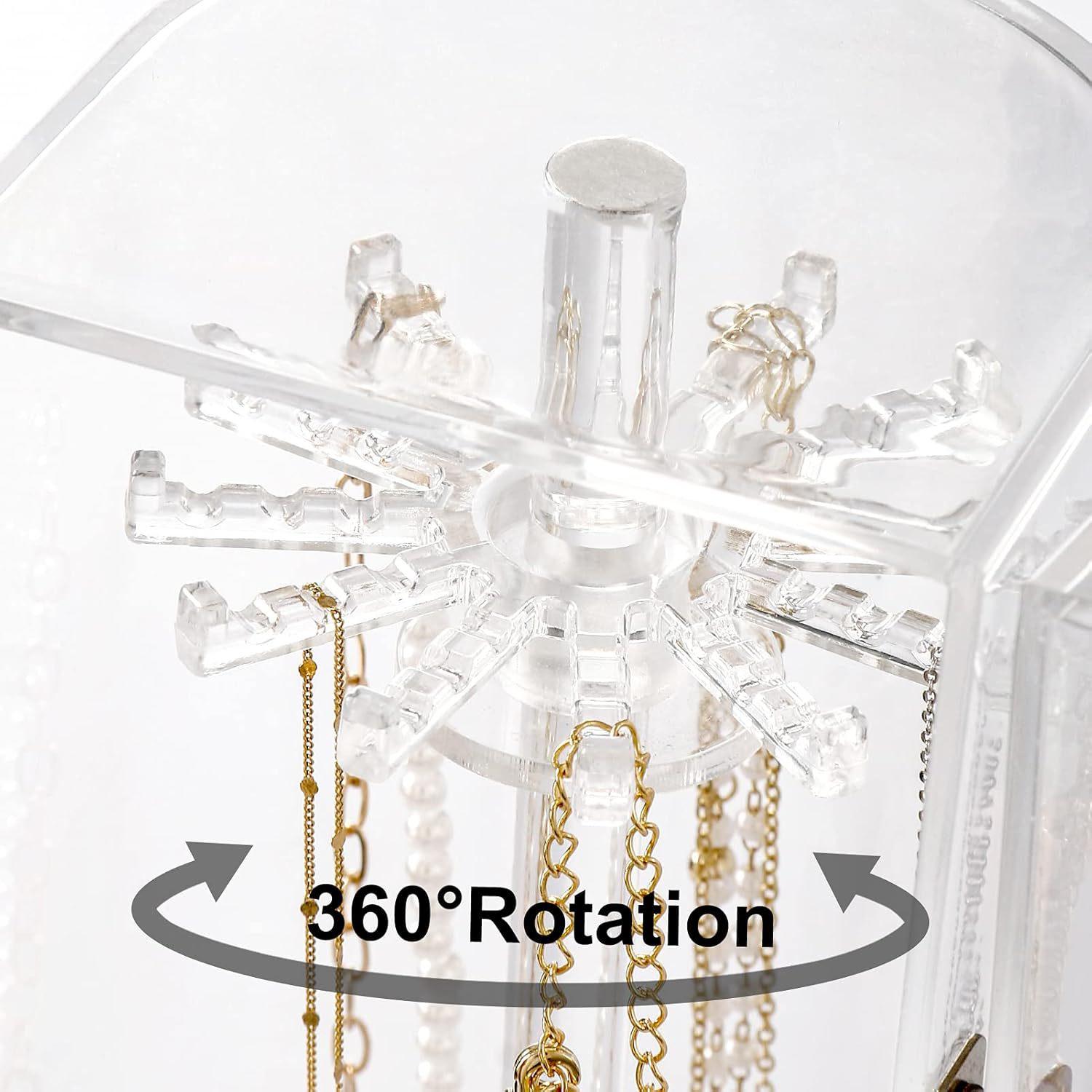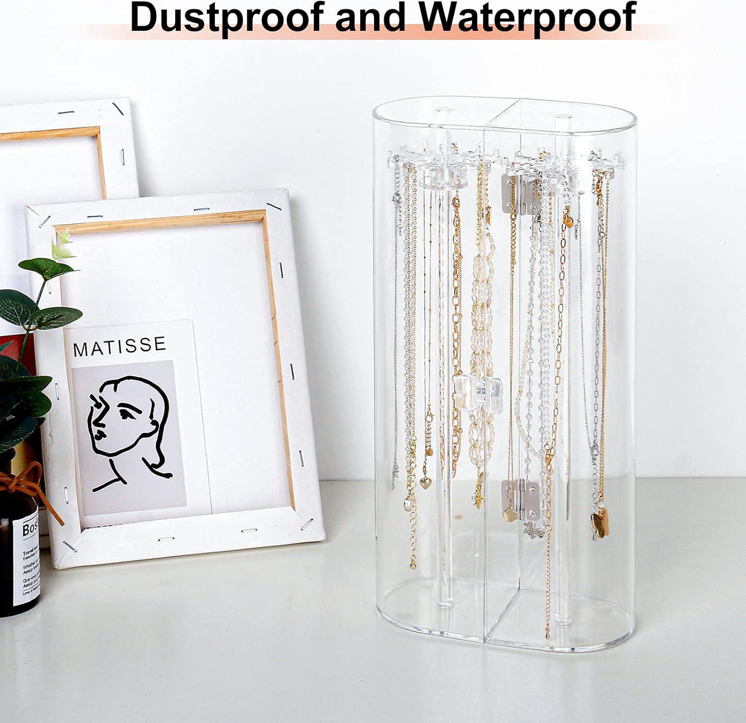 Nombre del producto: Estante giratorio para almacenamiento de joyas a prueba de polvo, vitrina para exhibición de collares largos, colgantes y pulseras