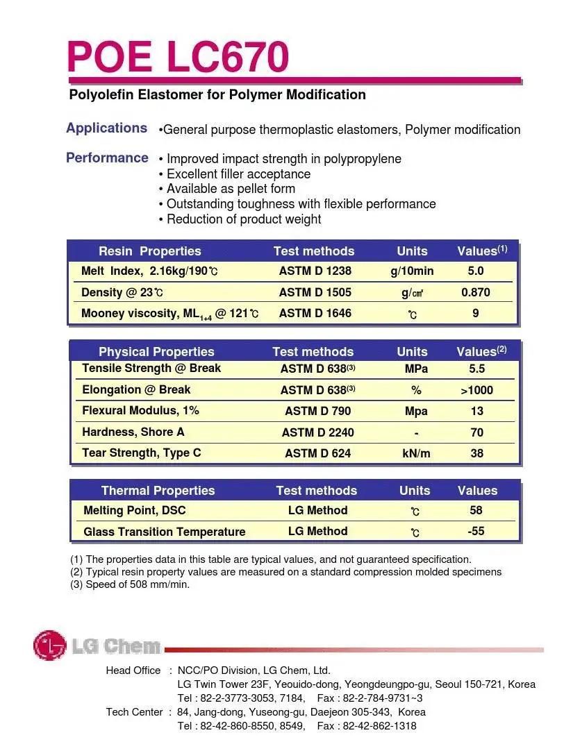 POE Corea LG LC670 Reforzado Resistente a Impactos Alta Elasticidad Temperatura Inferior del Paquete Caliente Transparente Grado de Fortalecimiento