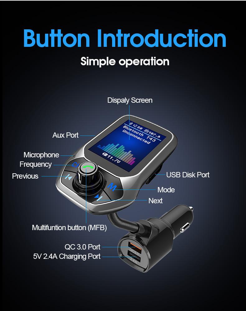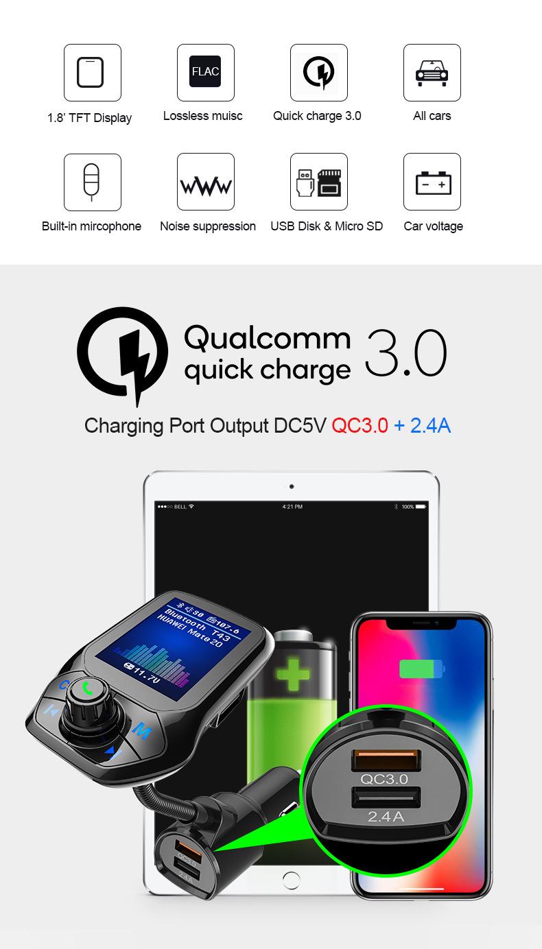 2. El T43 vendrá con un cargador rápido QC 3.0 y 5V 2.4A, está disponible para cargar dispositivos portátiles en el coche.