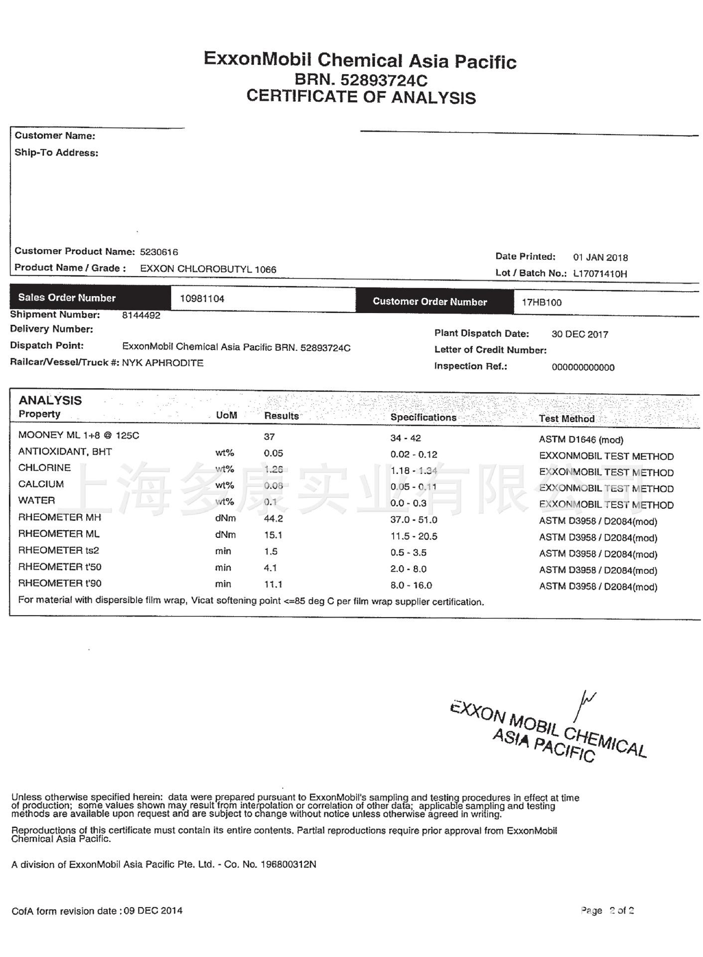 Compra Caucho de butilo de cloruro 1066, 1068 (Eckson) al por mayor en Joom.pro