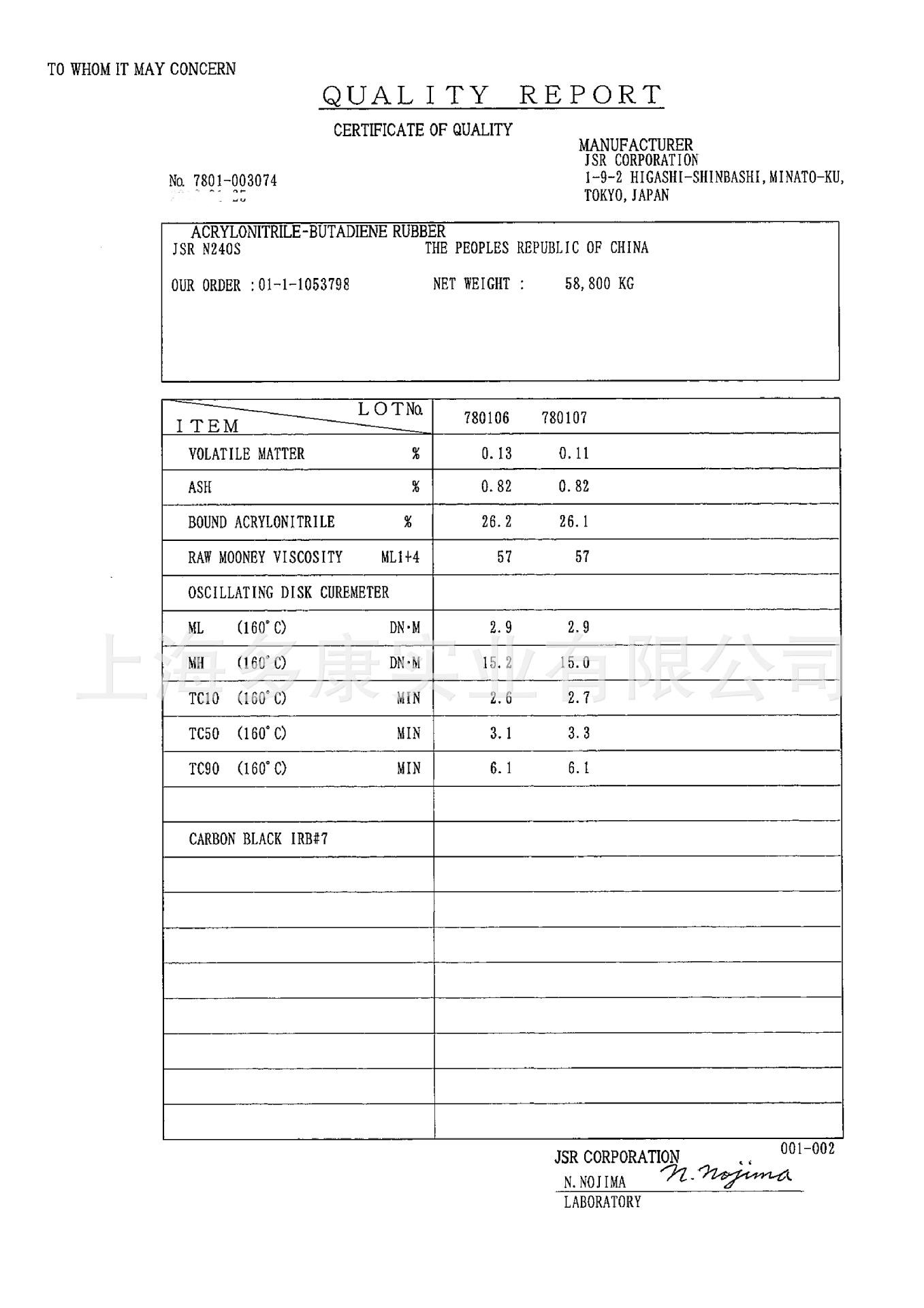 Caucho de Nitrilo JSR240s Japón JSR, N240s Suministro Inmediato