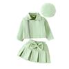 Traje de niña de estilo nuevo de moda de primavera y otoño transfronterizo europeo y americano, abrigo de solapa para niños, falda plisada con lazo y sombrero