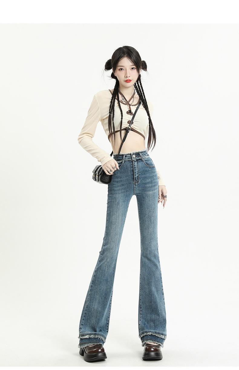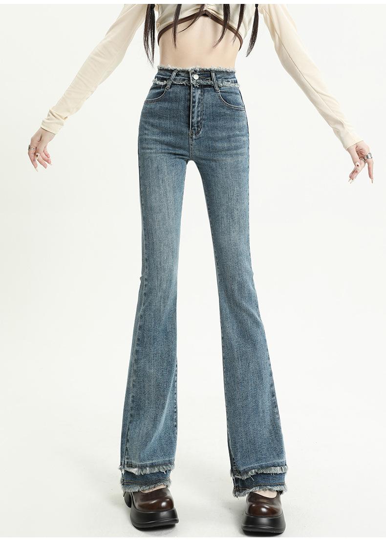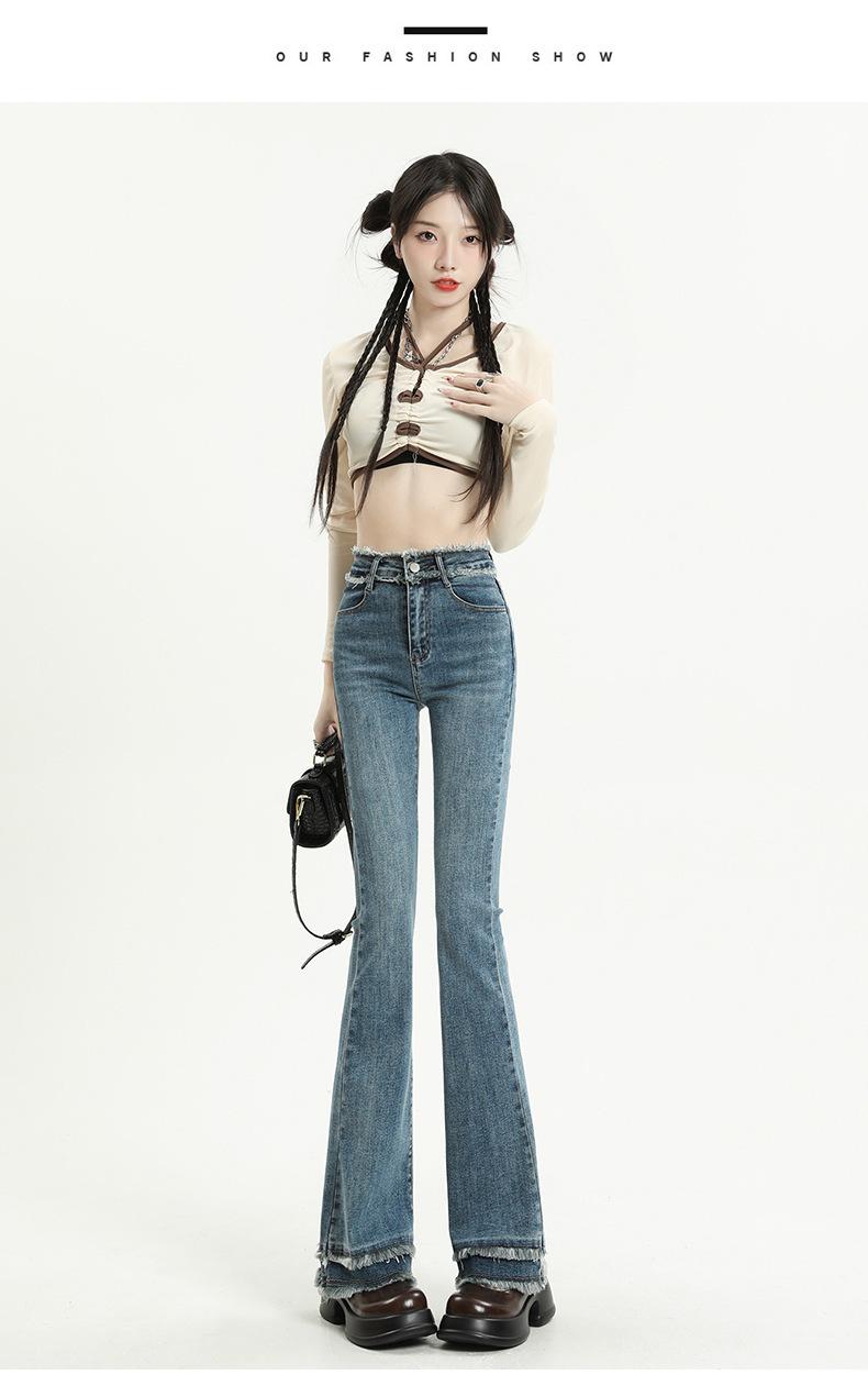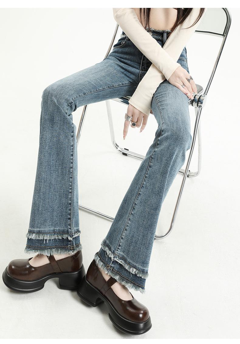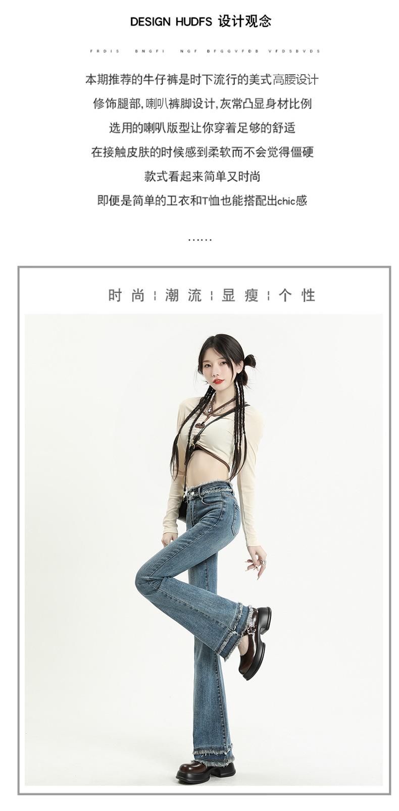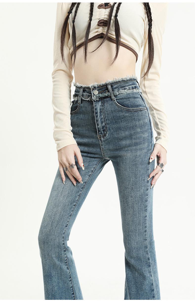 Compra Jeans Retro Micro-Acampanados para Mujer 2024 Primavera Nuevo Diseño de Cintura Alta Slim con Flecos Sexy Pantalones Acampanados al por mayor en Joom.pro