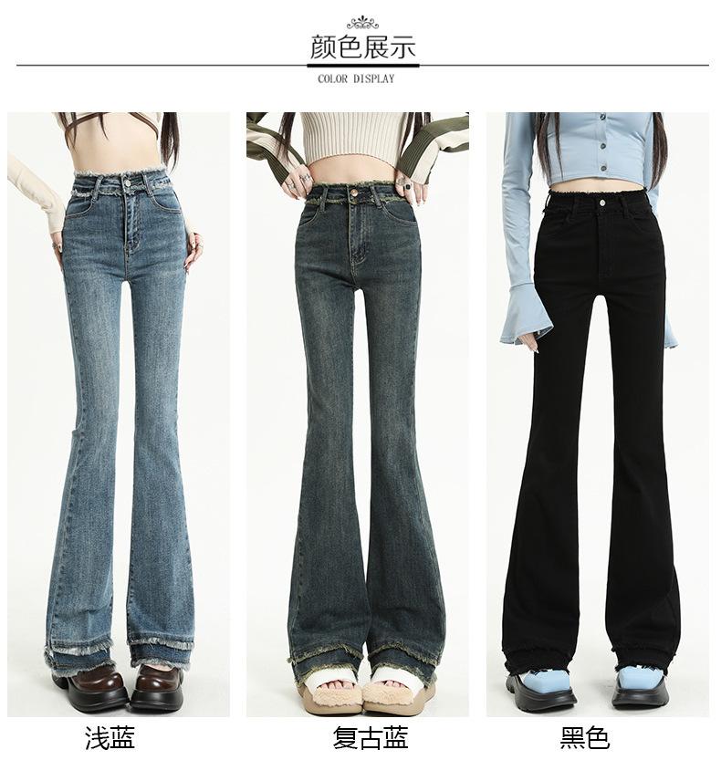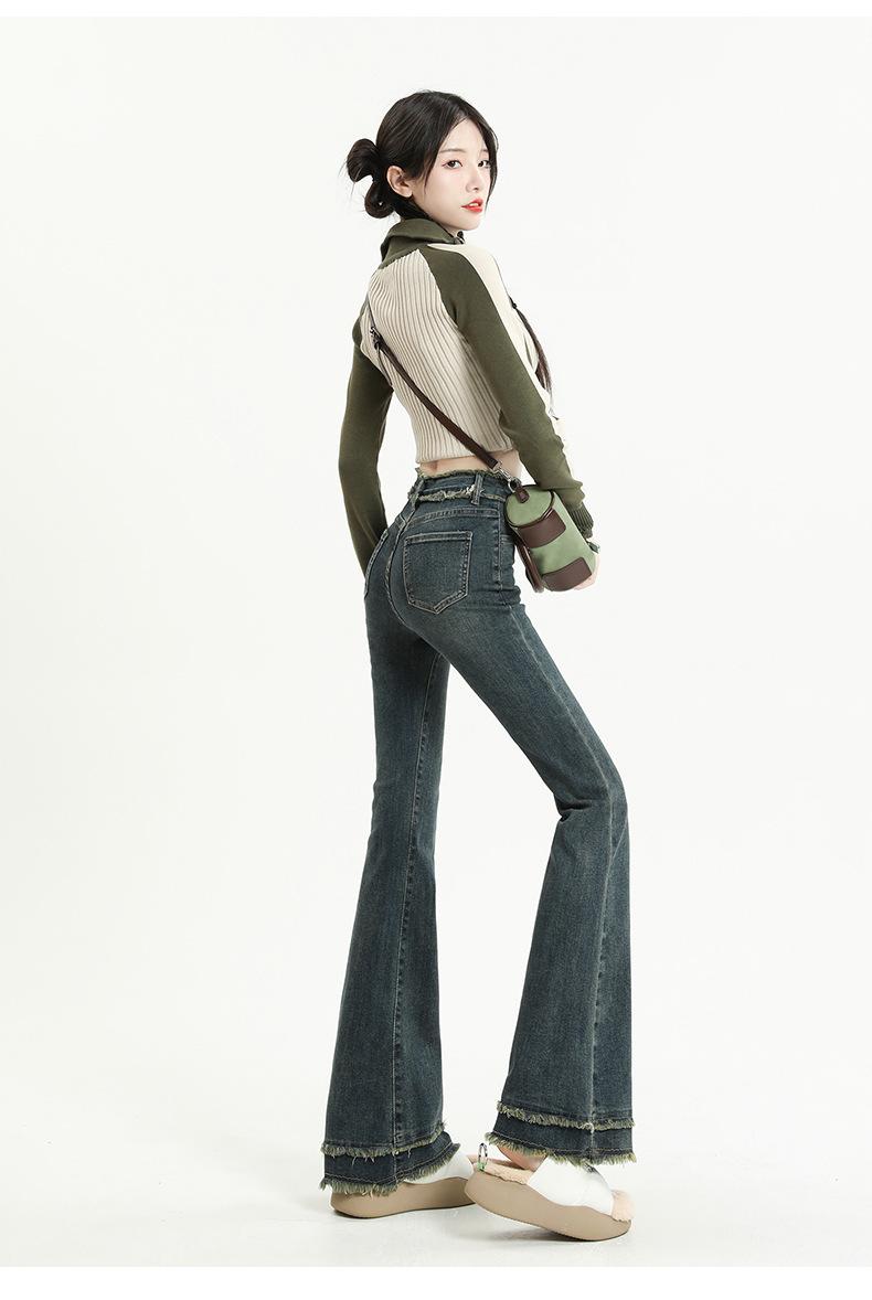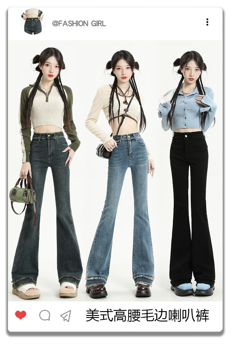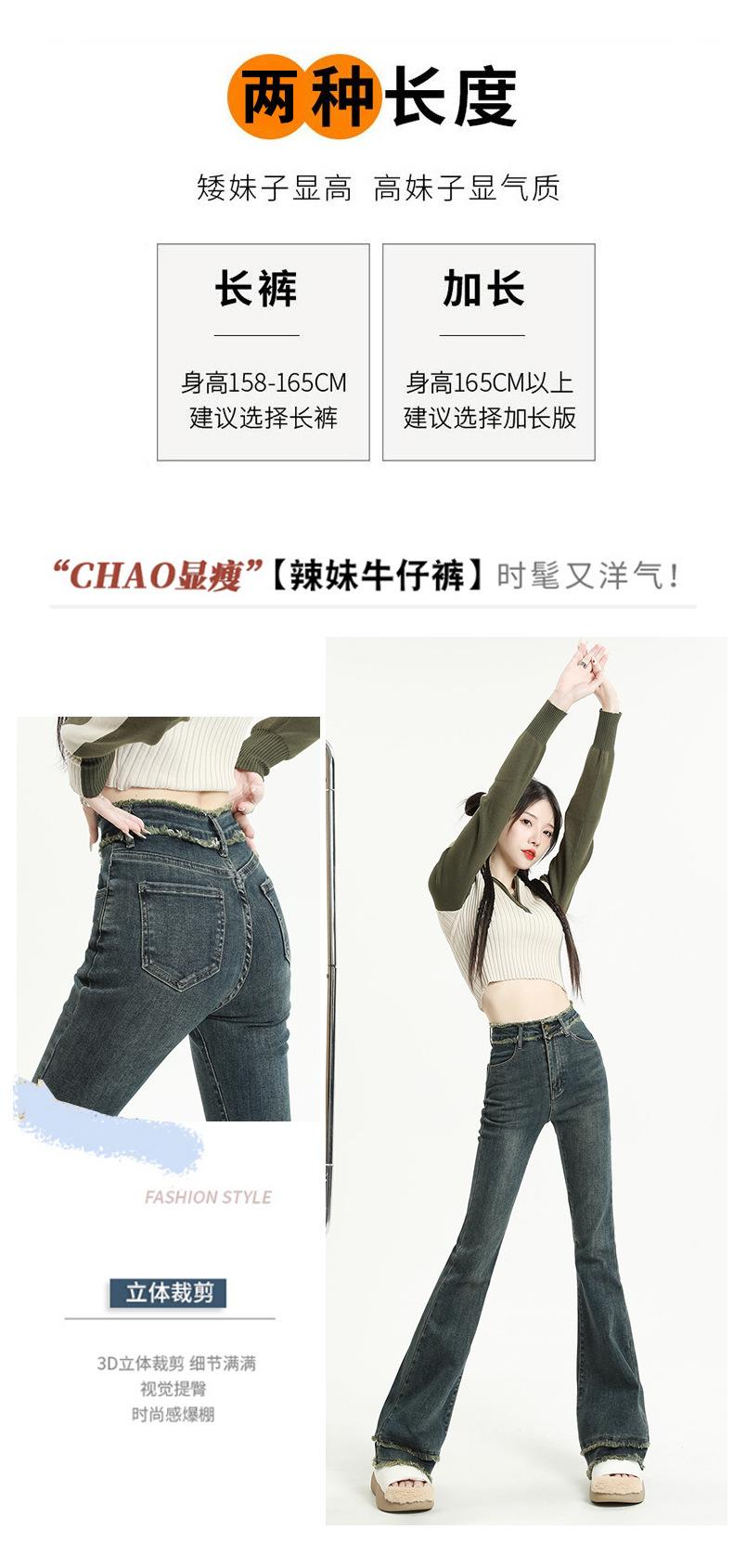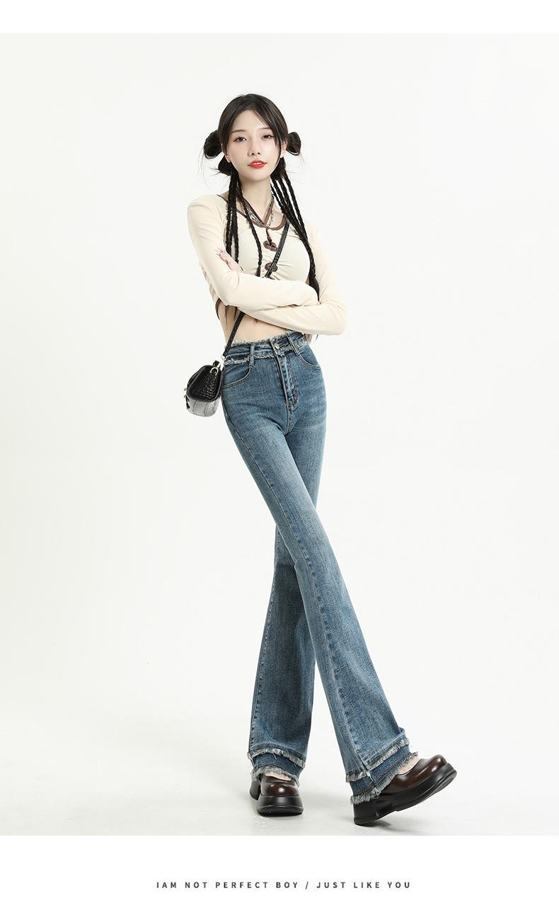 Compra Jeans Retro Micro-Acampanados para Mujer 2024 Primavera Nuevo Diseño de Cintura Alta Slim con Flecos Sexy Pantalones Acampanados al por mayor en Joom.pro