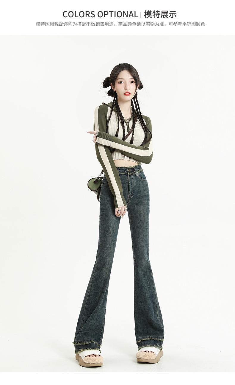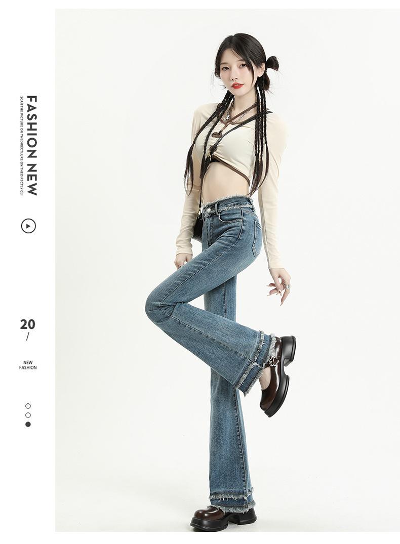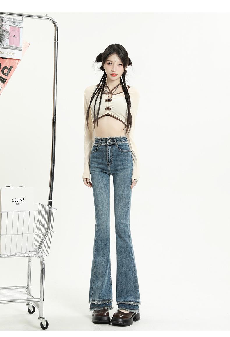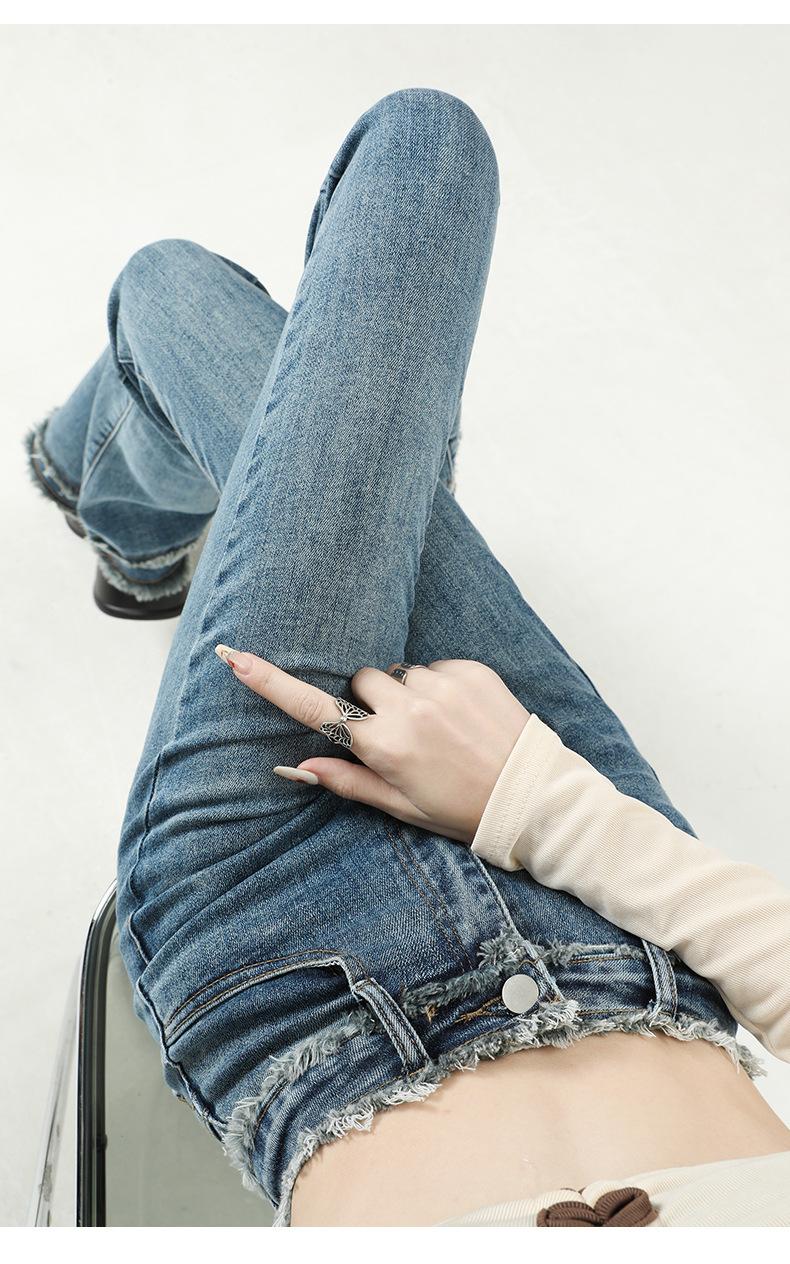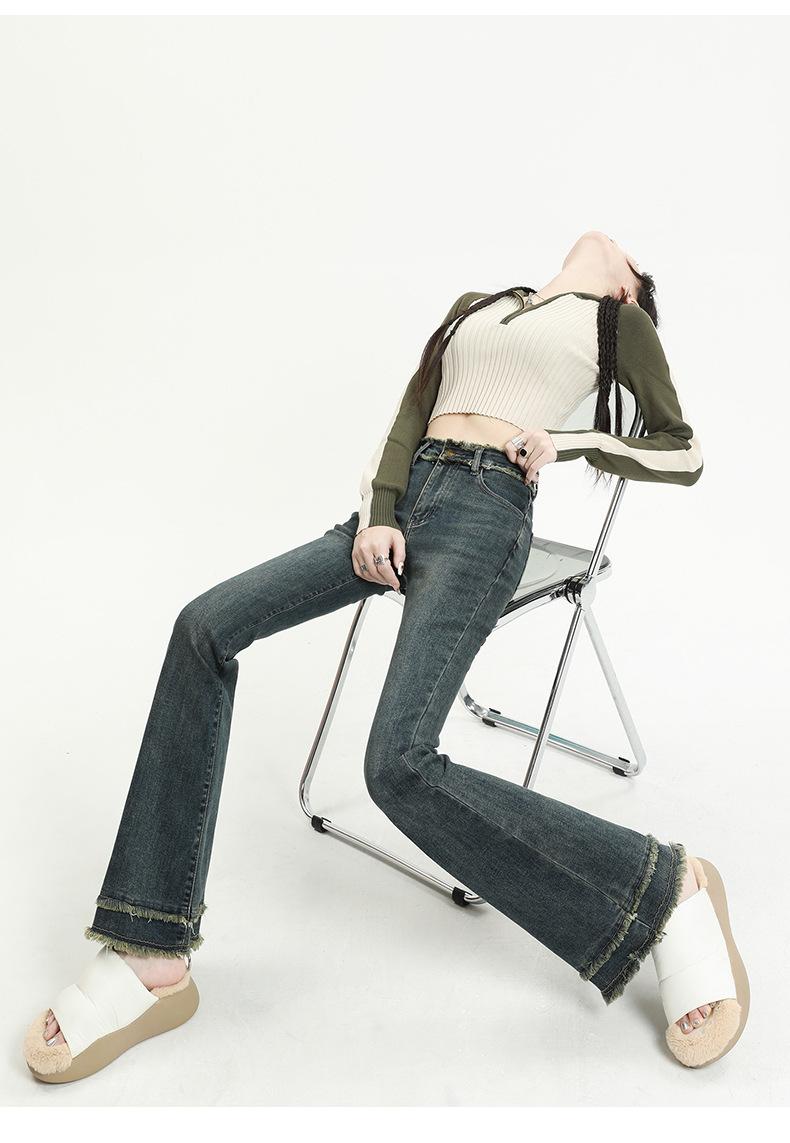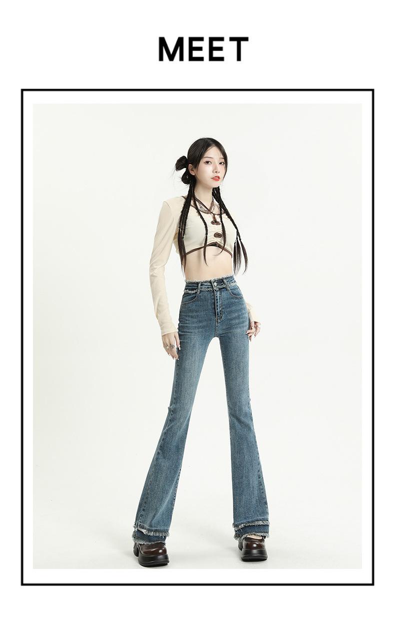 Compra Jeans Retro Micro-Acampanados para Mujer 2024 Primavera Nuevo Diseño de Cintura Alta Slim con Flecos Sexy Pantalones Acampanados al por mayor en Joom.pro