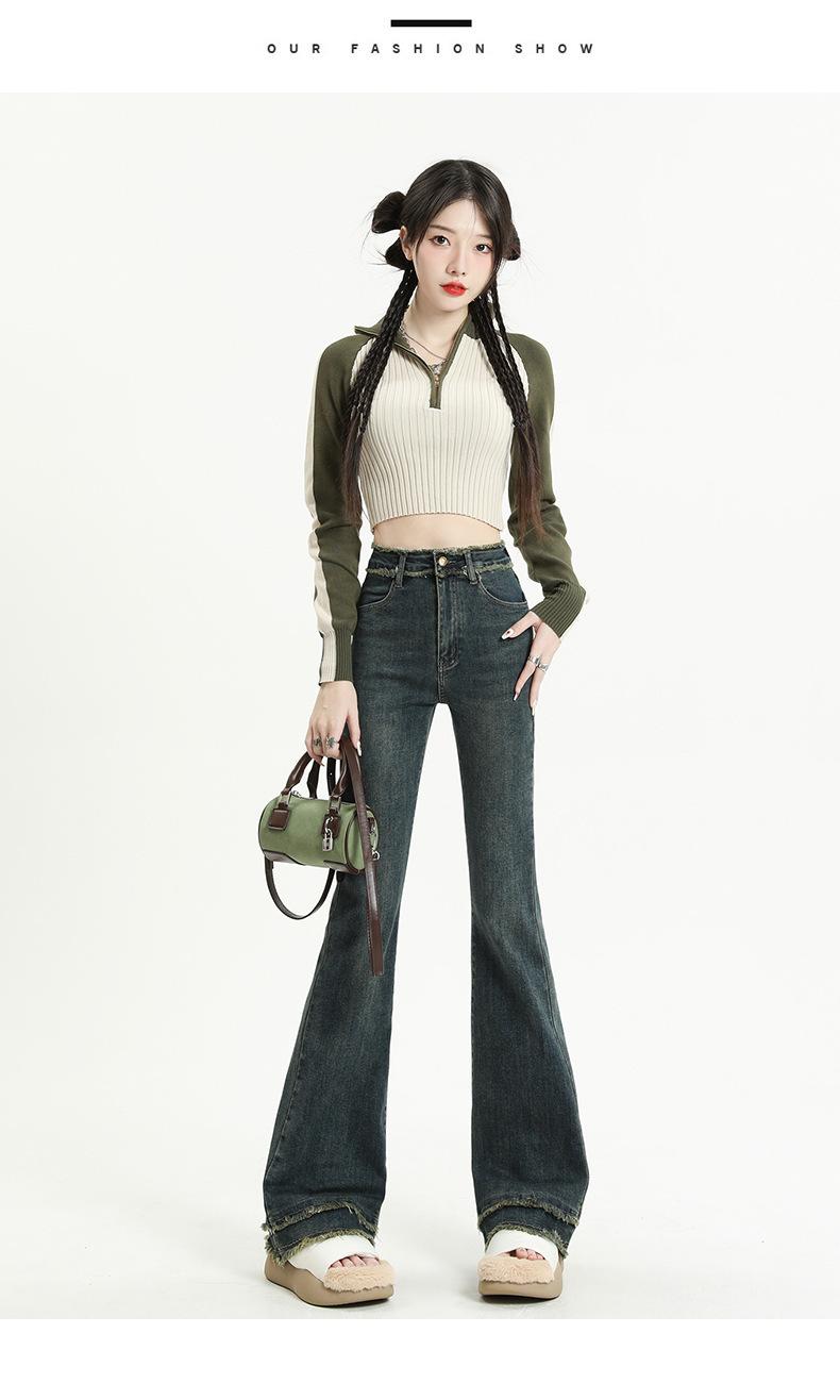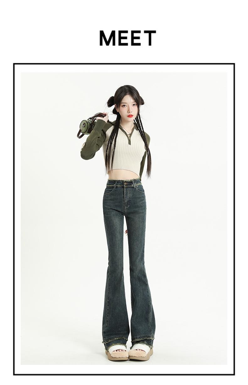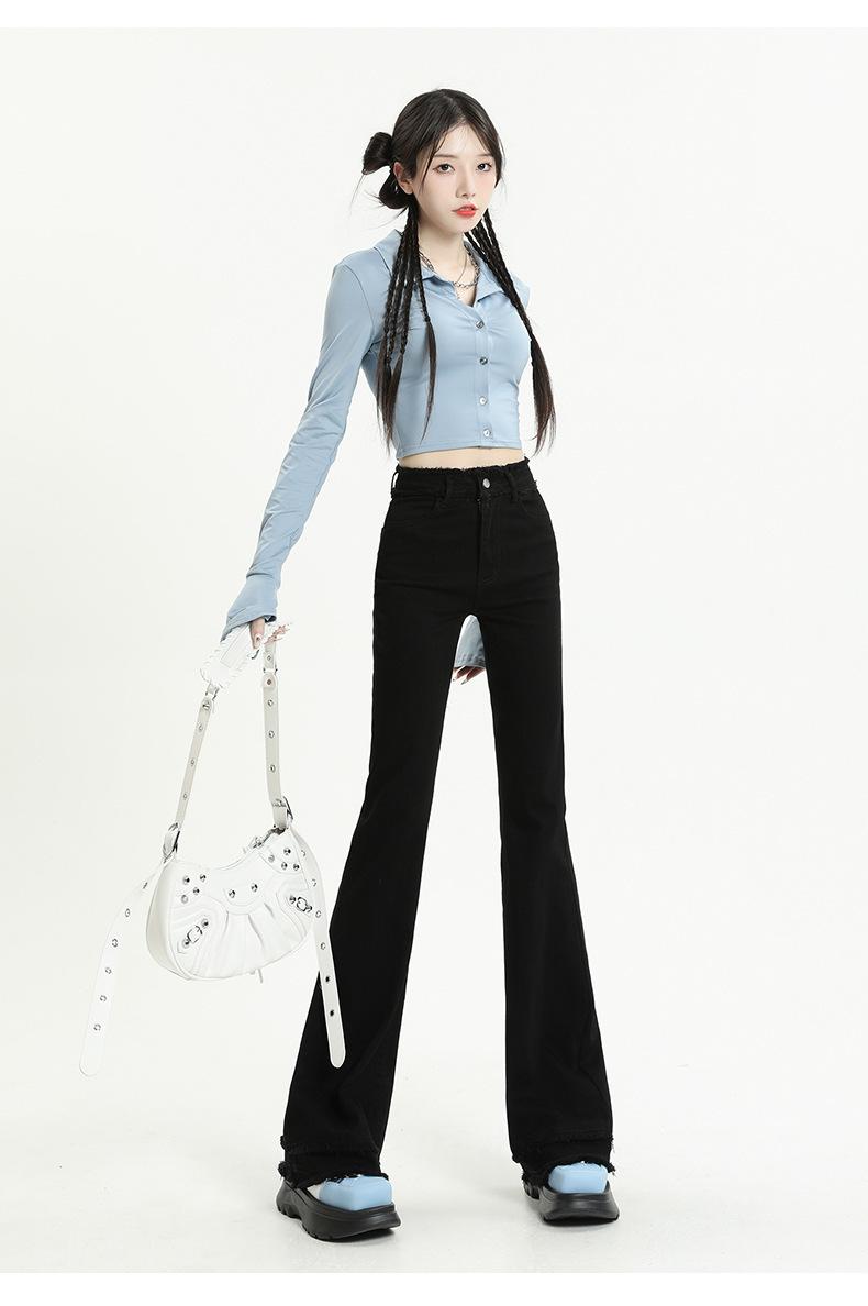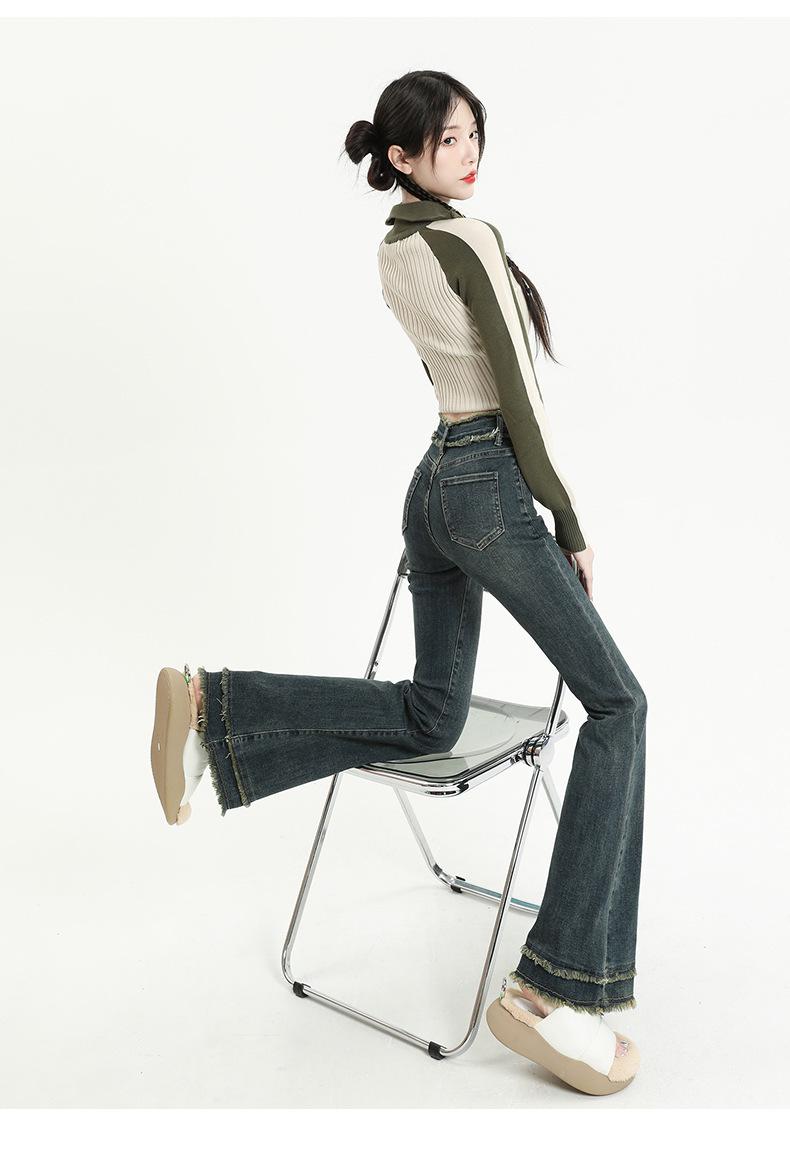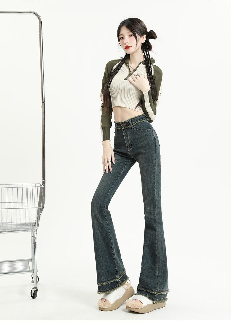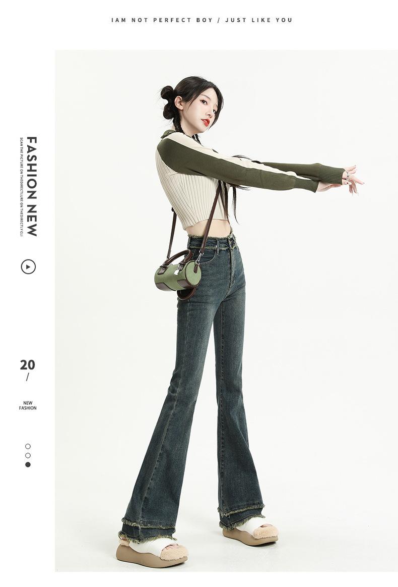 Compra Jeans Retro Micro-Acampanados para Mujer 2024 Primavera Nuevo Diseño de Cintura Alta Slim con Flecos Sexy Pantalones Acampanados al por mayor en Joom.pro