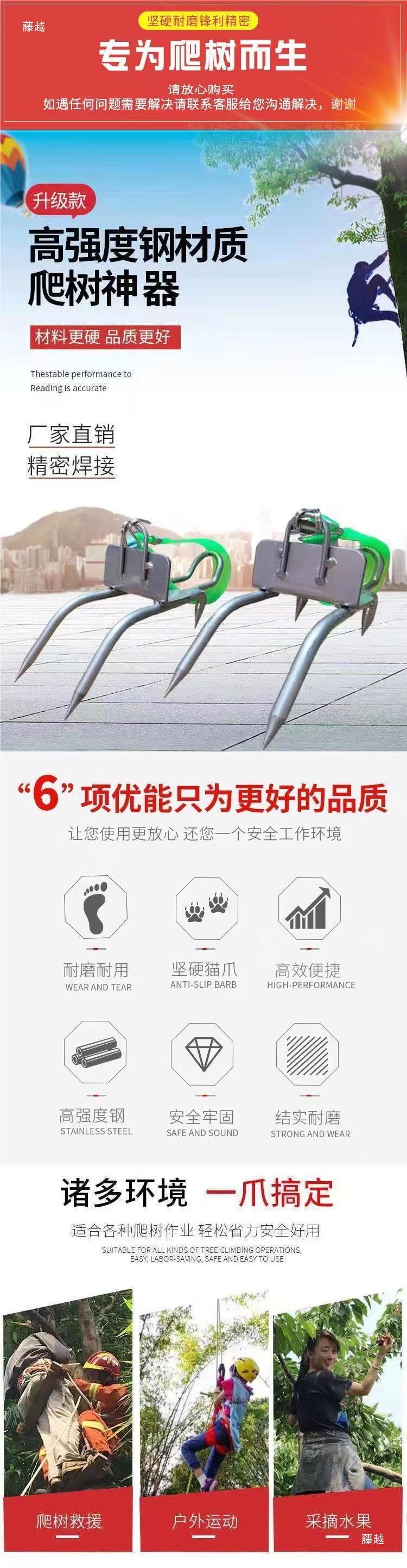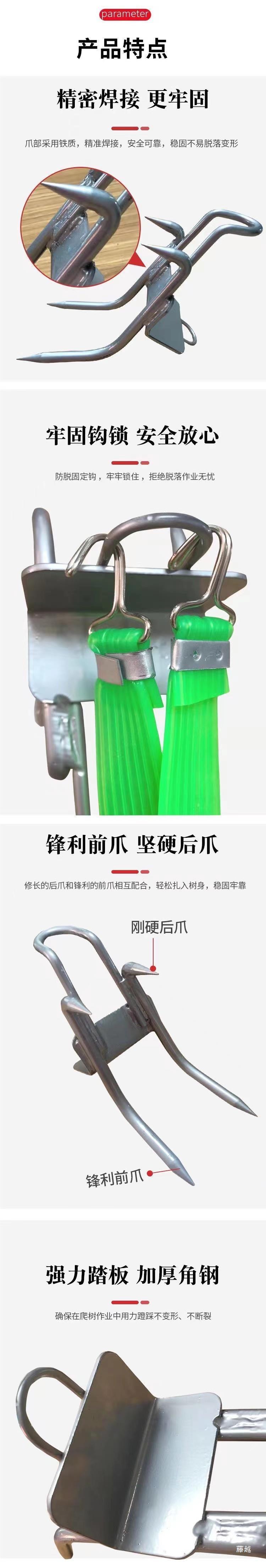 Five-claw reinforced cast iron tree climbing device + tree belt + rubber band tied foot rope (free gloves)