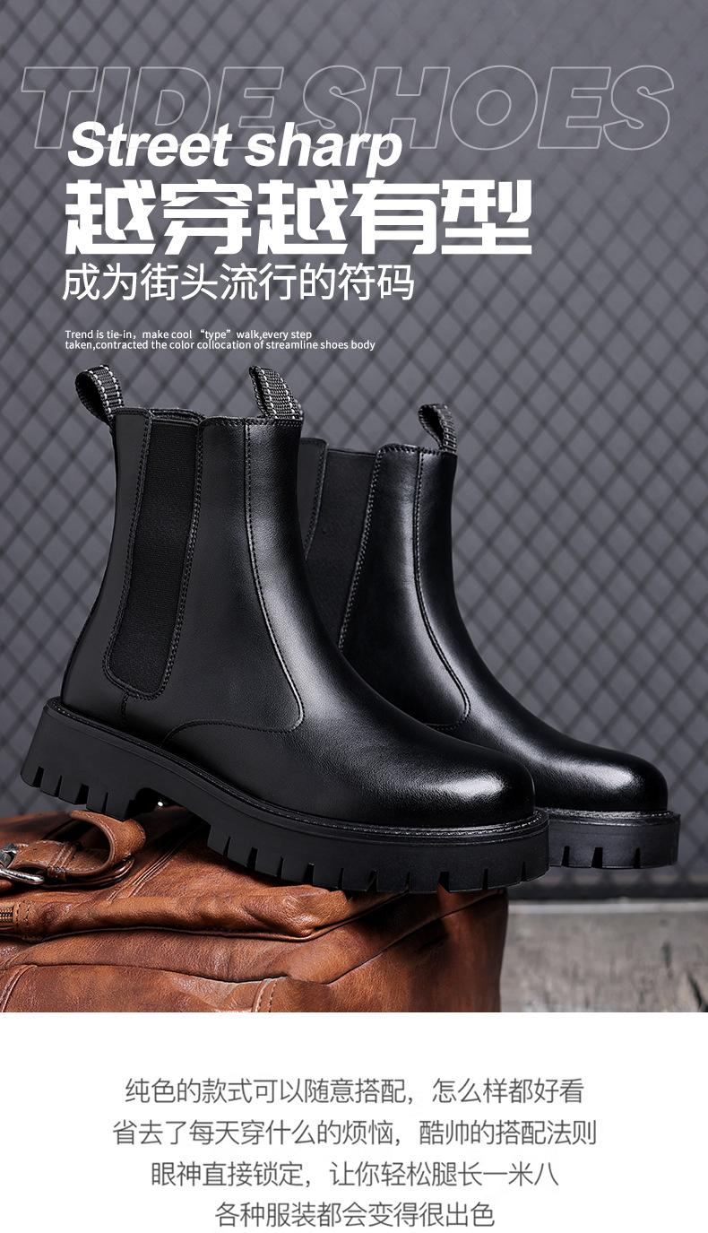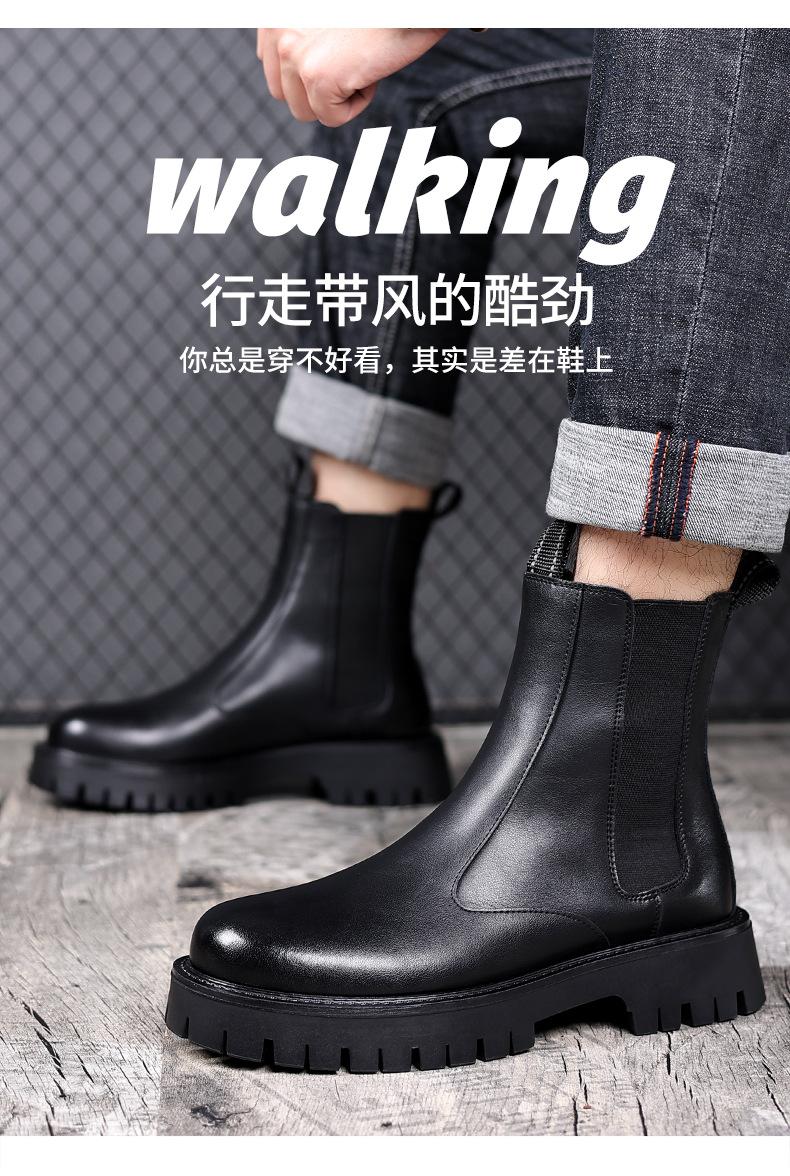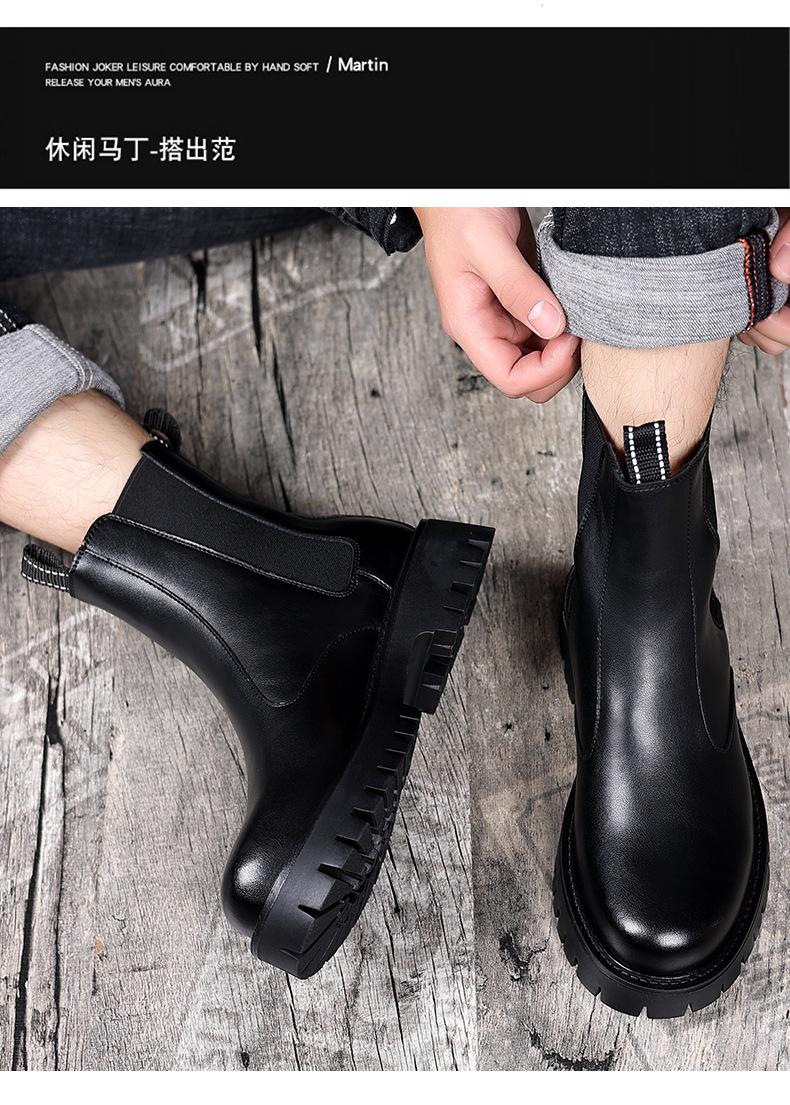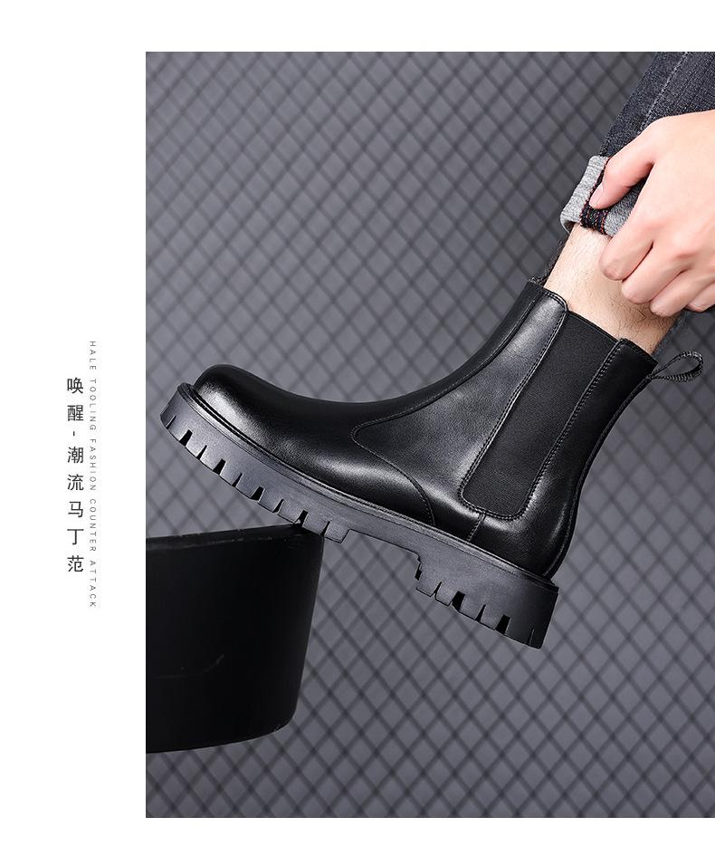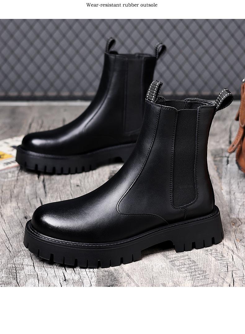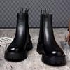 Botas Martin Negras para Hombre Otoño e Invierno a la Moda Combinables Estilo Británico de Caña Media Botines Chelsea Cuero Vacuno Zapatos de Cuero de Caña Alta para Hombre