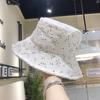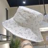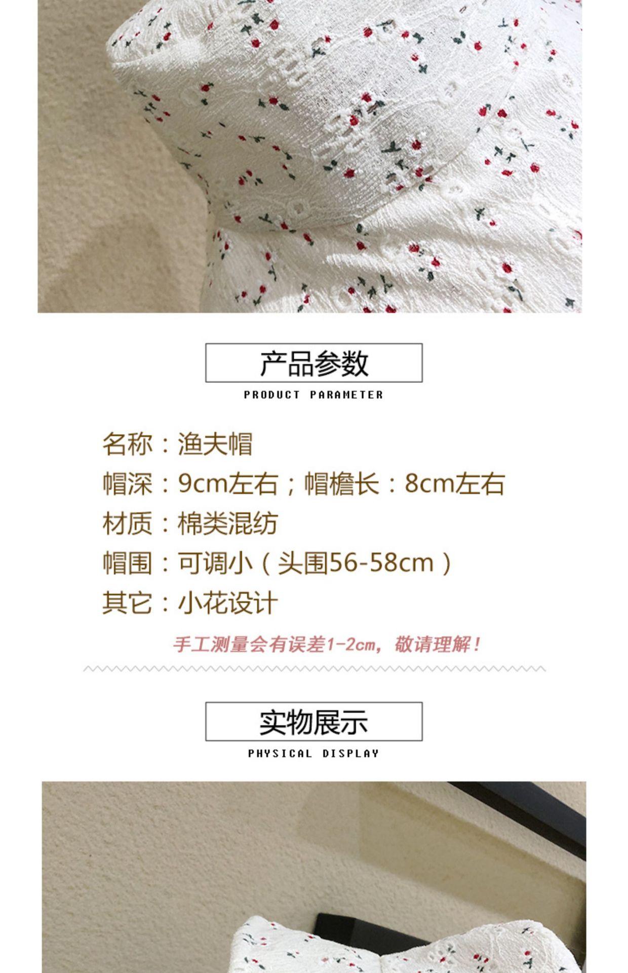 Sombrero de pescador con flores pequeñas bordadas de Corea del Sur para mujer, combina con todo, fresco, de ala corta, para viaje, con protección solar, plegable, de parte superior plana.
