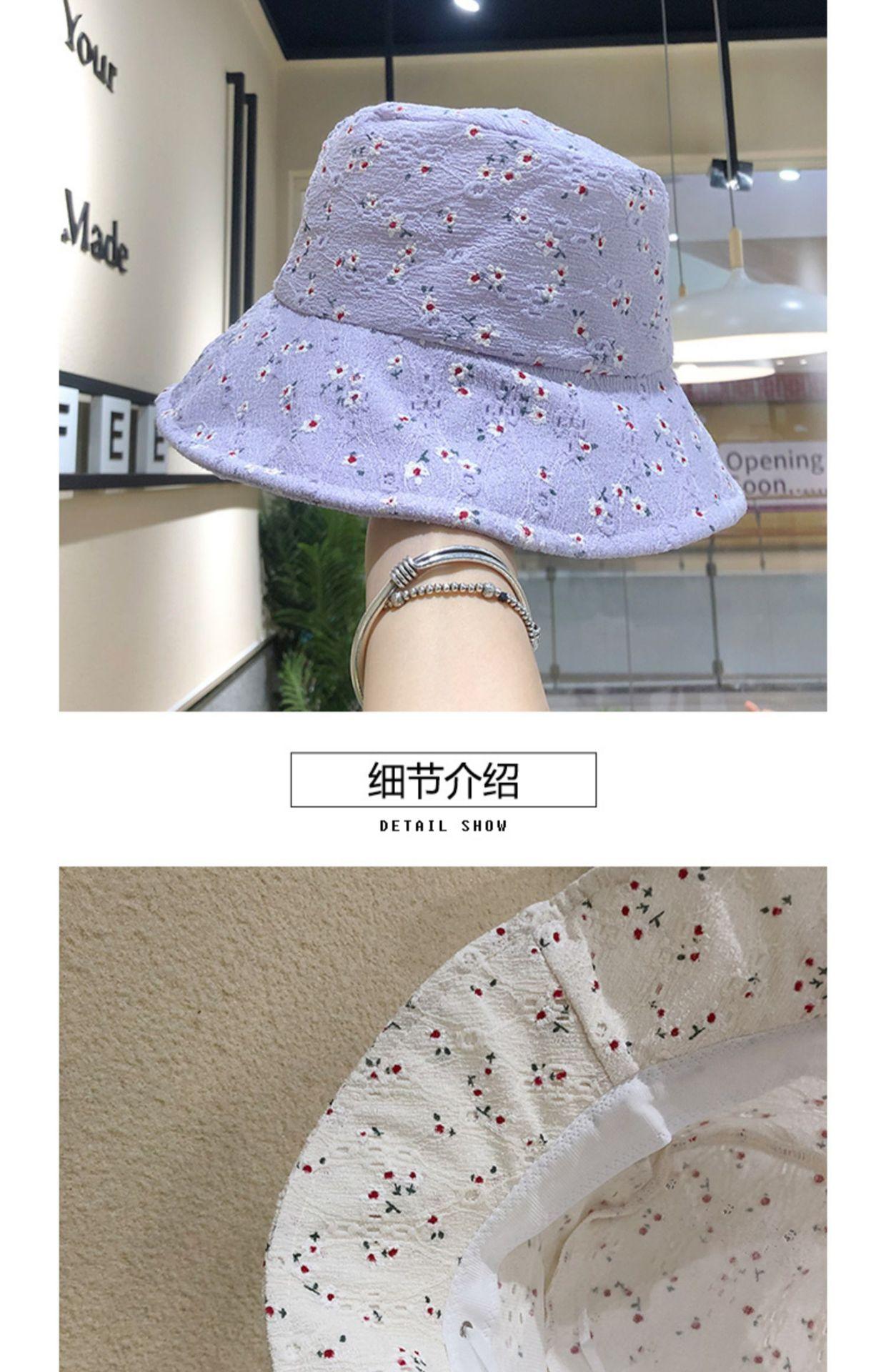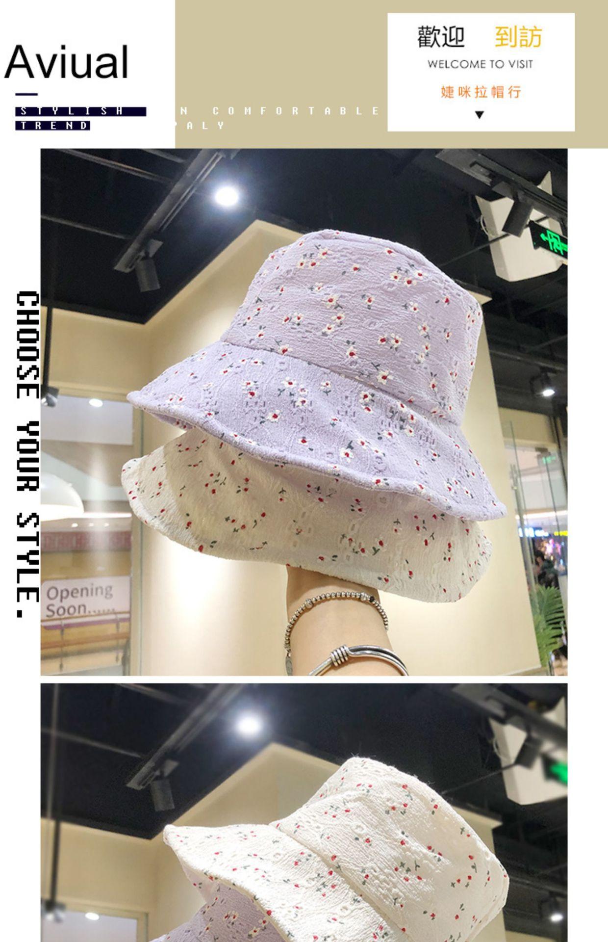 Purple small flower fisherman hat with color difference, Beige White small flower fisherman hat with color difference