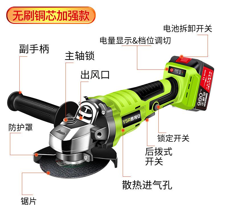 Compra Amoladora angular de batería de litio sin escobillas, amoladora angular de carga, amoladora inalámbrica, máquina de corte multifunción, máquina pulidora al por mayor en Joom.pro