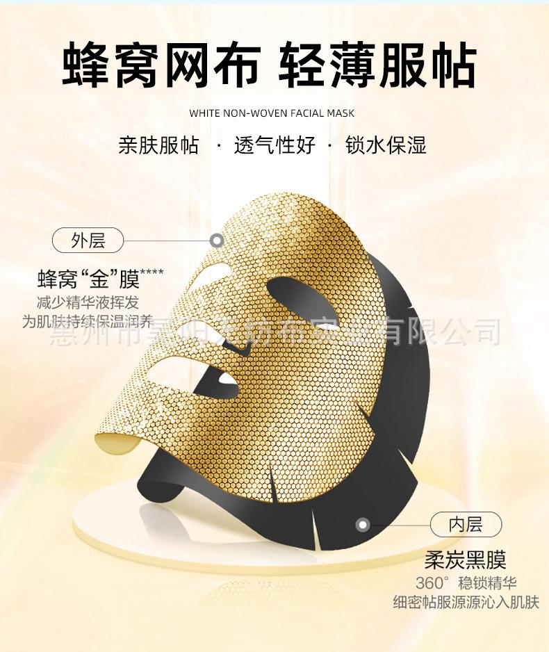 Papel absorbente para mascarilla de oro y carbón suave con patrón de panal, tela para mascarilla de papel dorado, entrega de fábrica en una sola pieza