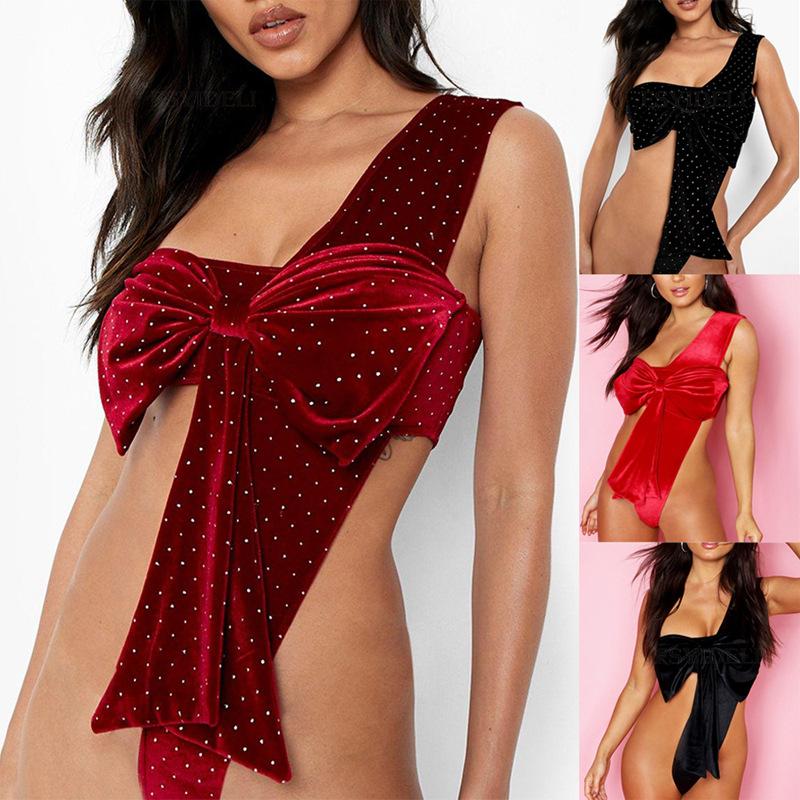 Mono de una pieza sexy de terciopelo con lazo y un solo hombro para mujer, disponible en Amazon, SU2698