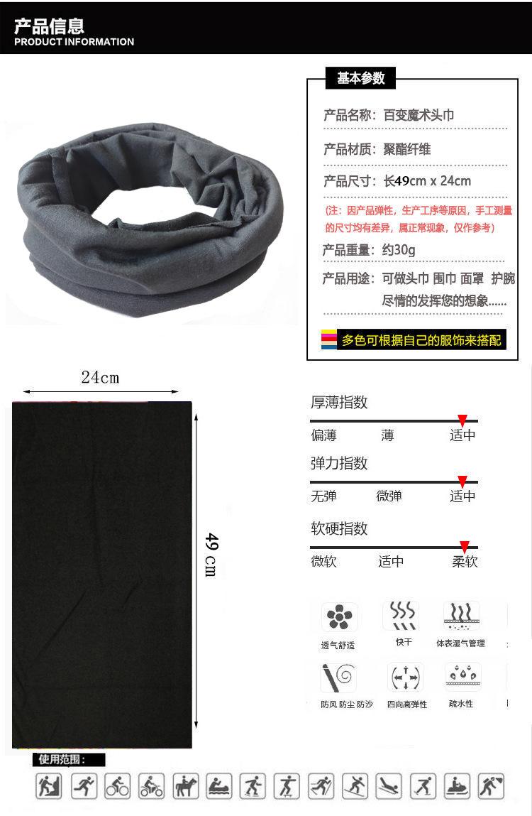 Mascarilla deportiva personalizada de color sólido para exteriores, multifuncional, combinable con todo, con variedad de pañuelos mágicos y sin costuras.