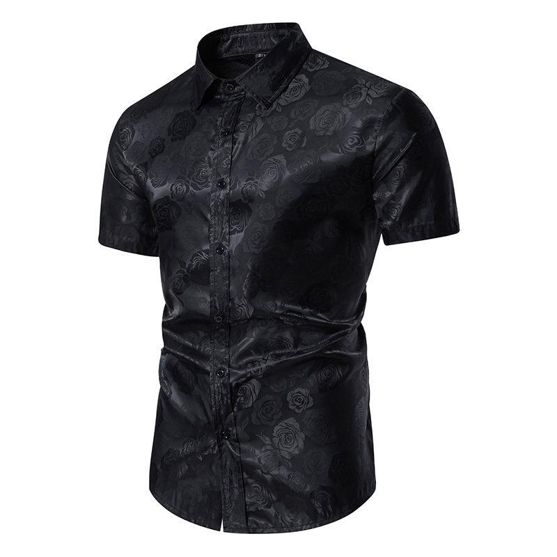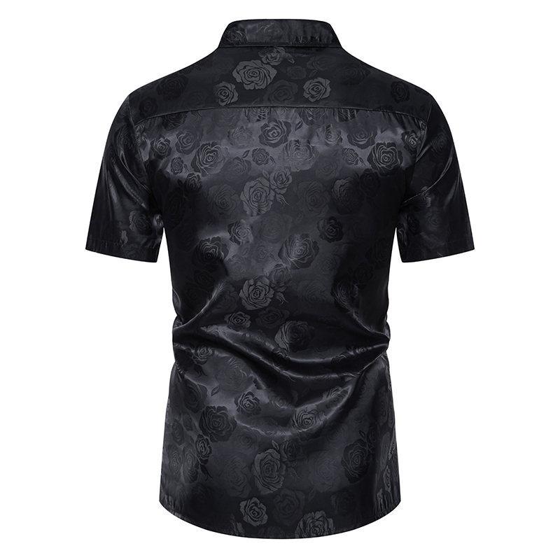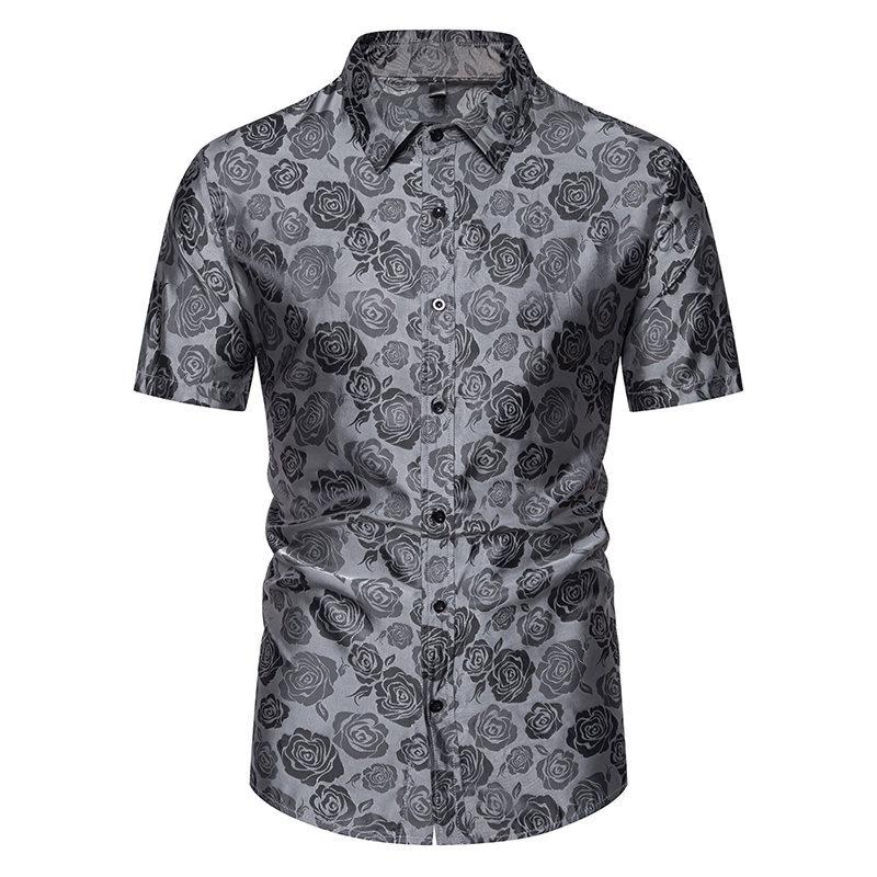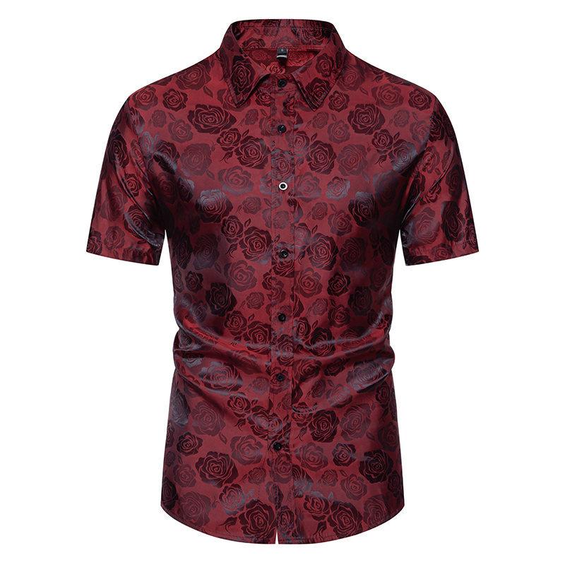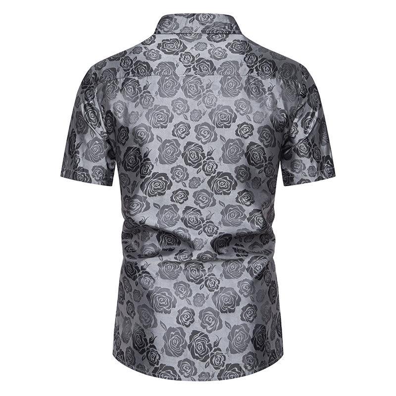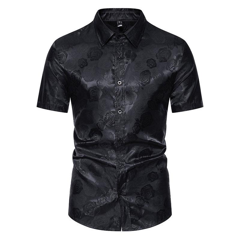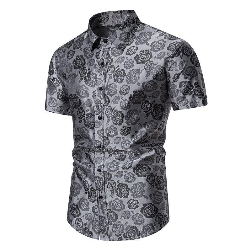Camisa de manga corta para hombre, nueva moda 2024, camisa con botones y estampado de rosas, camisa informal con botones, corte entallado.