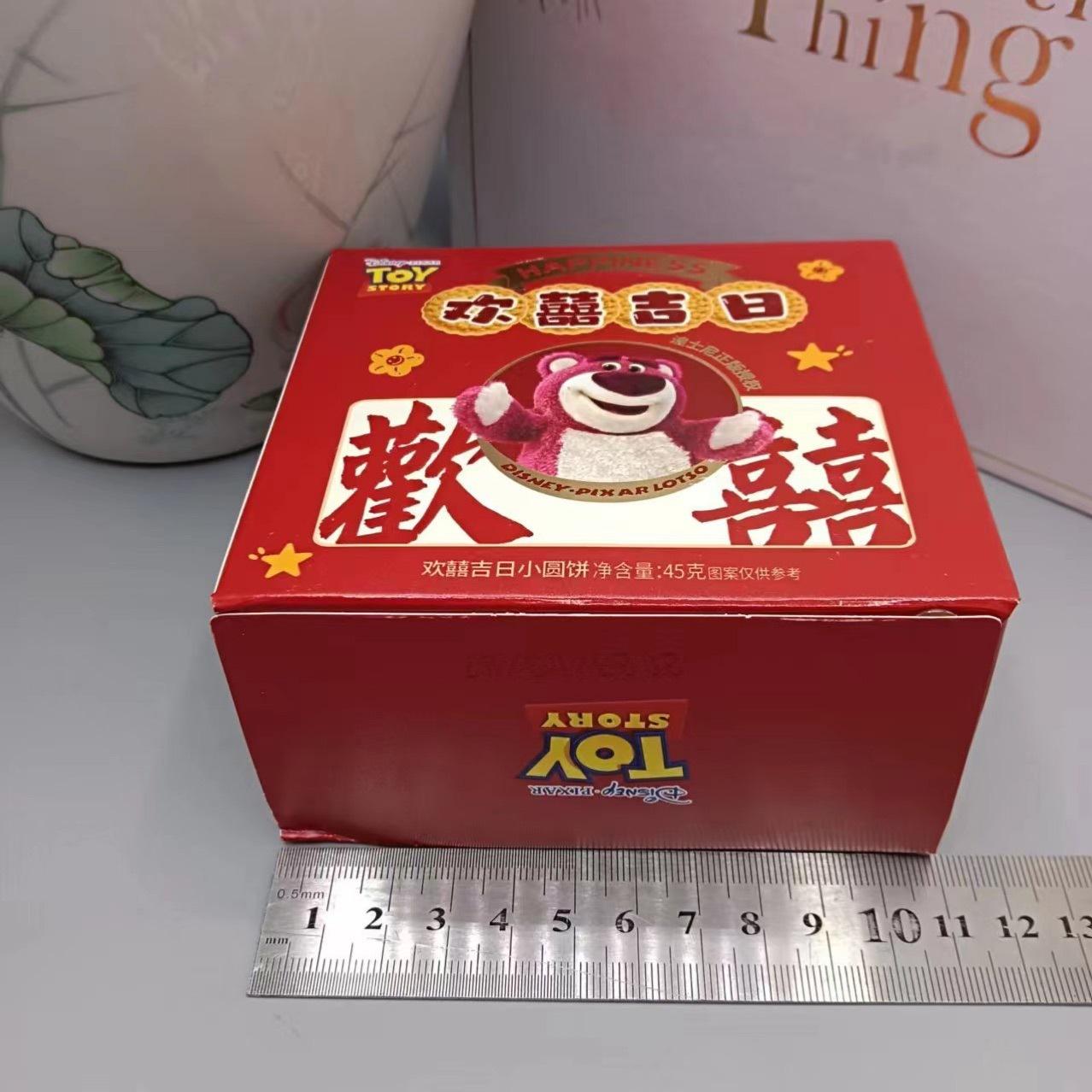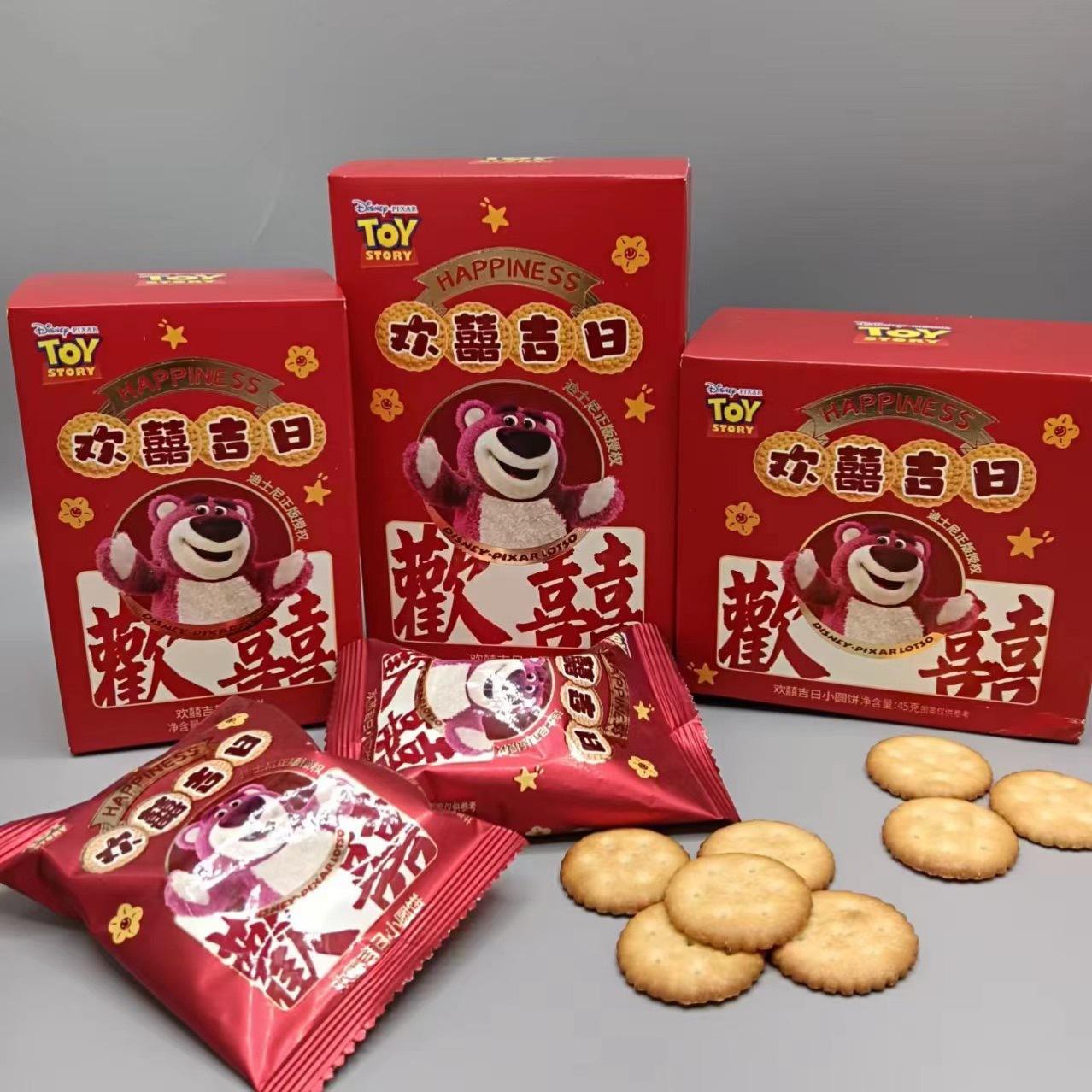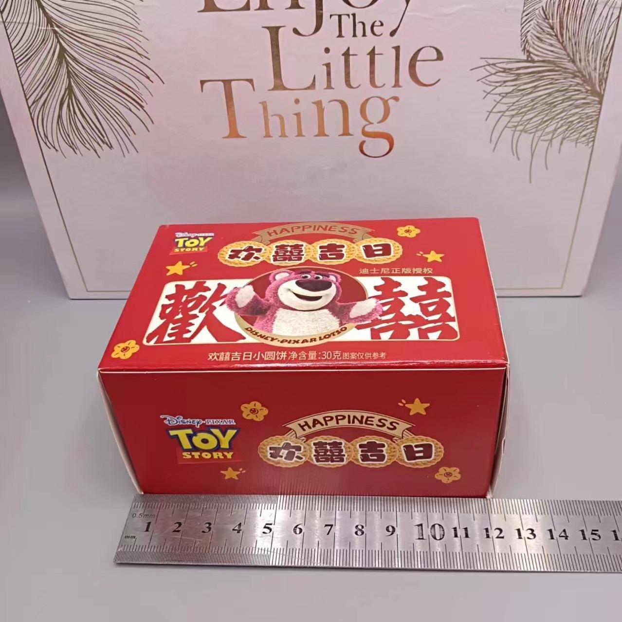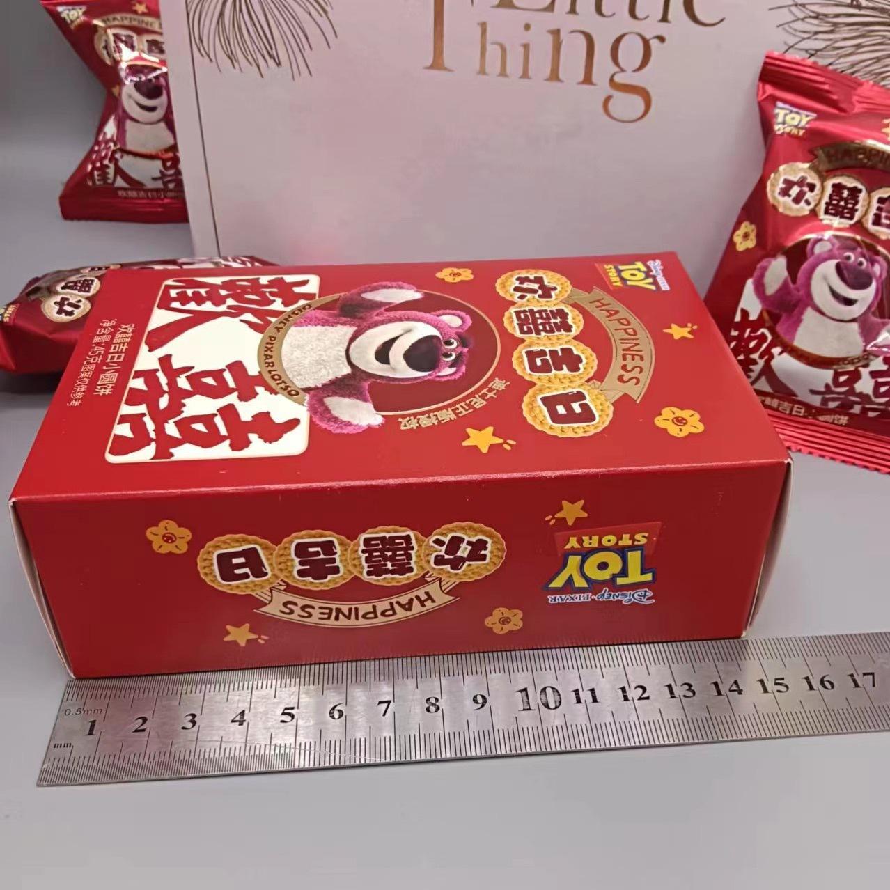 Pastel pequeño redondo feliz de oso de fresa, galleta dura, punto de té 45, bocadillo informal, dulces de boda con regalo de mano, festivo para bebé