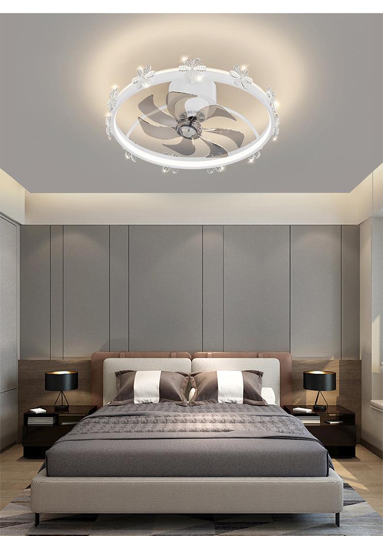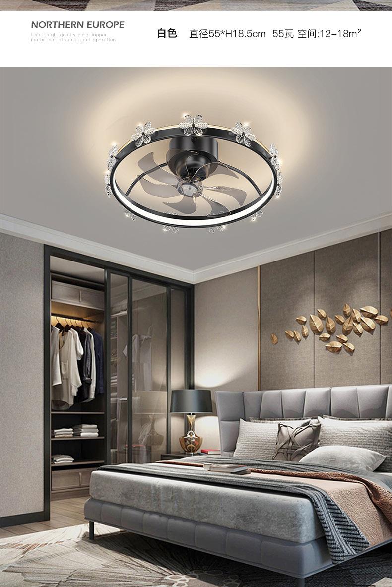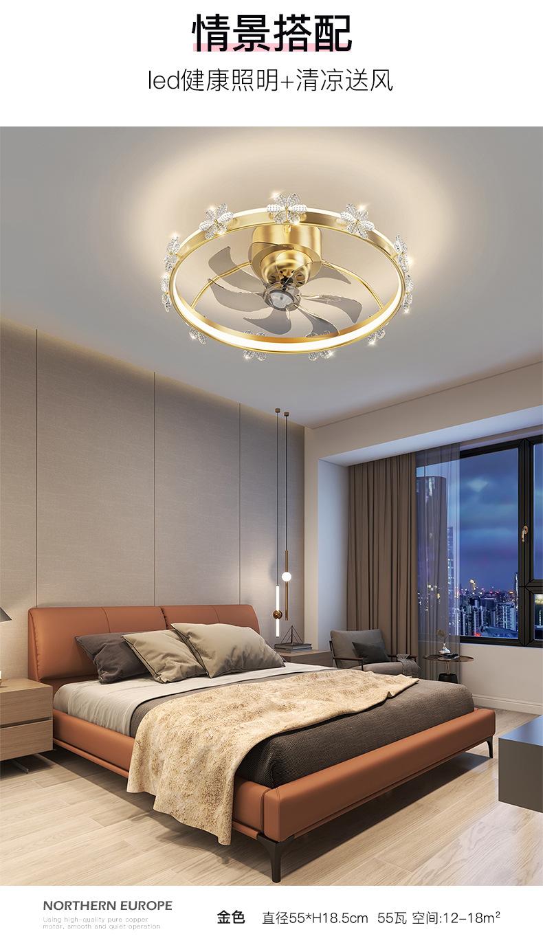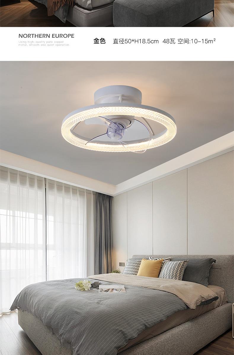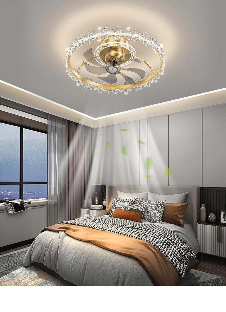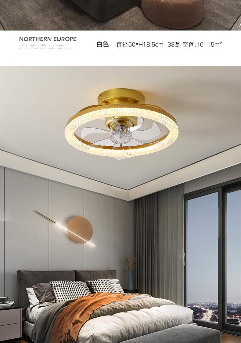 Ventilador de techo de cristal de lujo ligero para dormitorio transfronterizo, luz de ventilador de techo de cristal, ventilador eléctrico integrado para el hogar invisible para sala de estar nórdica