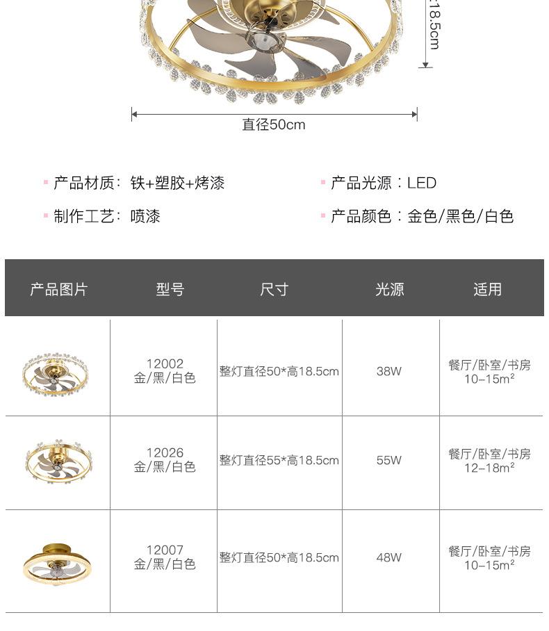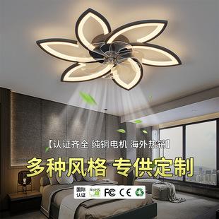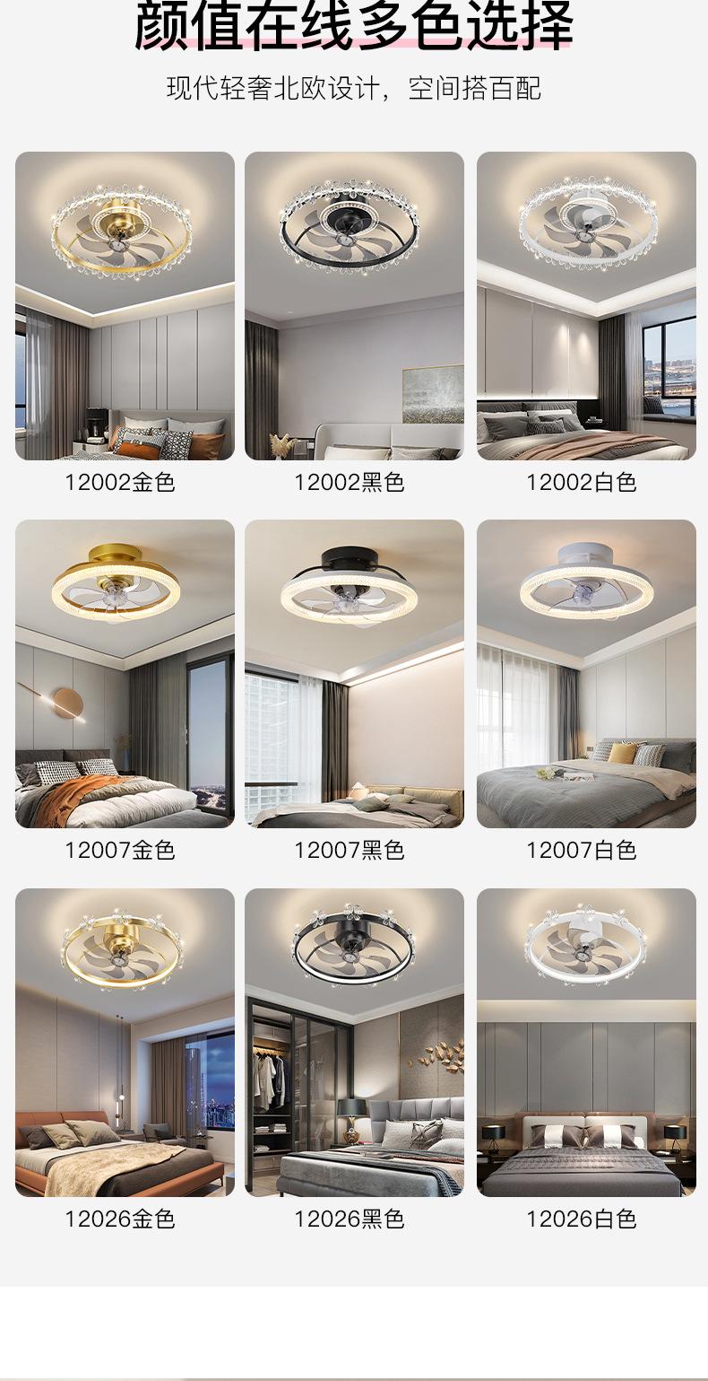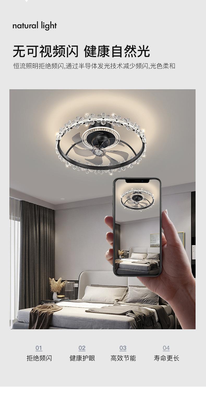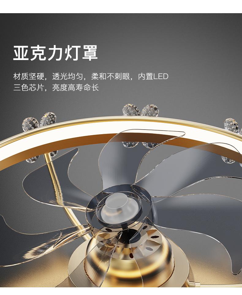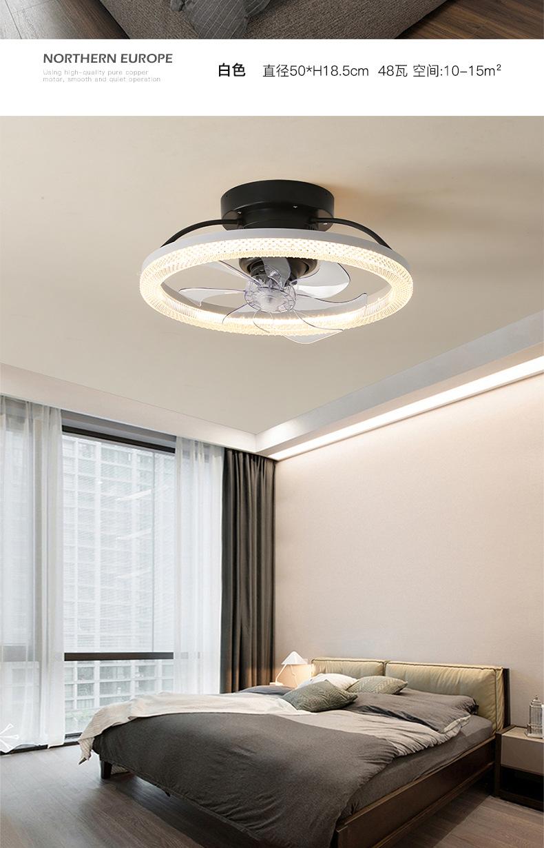 Ventilador de techo de cristal de lujo ligero para dormitorio transfronterizo, luz de ventilador de techo de cristal, ventilador eléctrico integrado para el hogar invisible para sala de estar nórdica