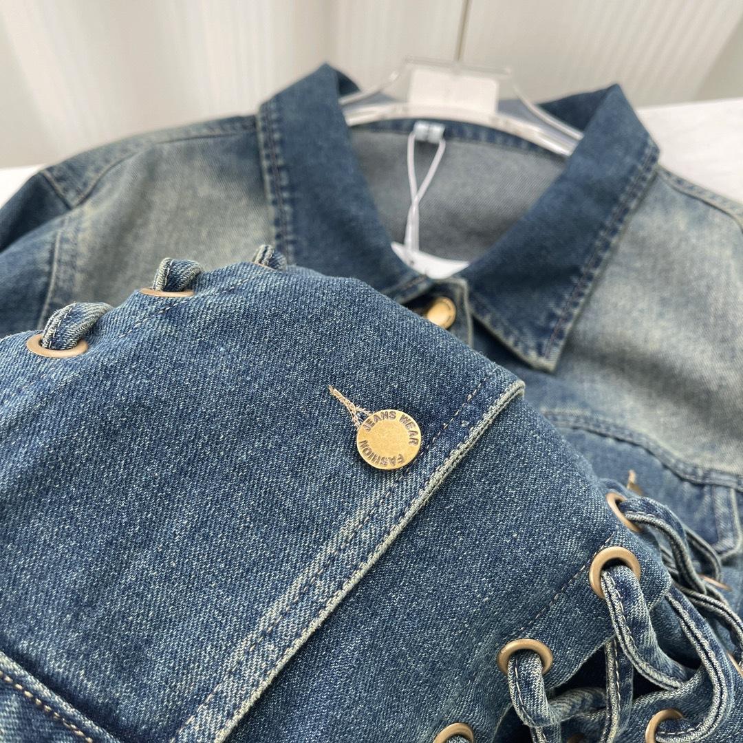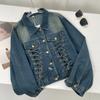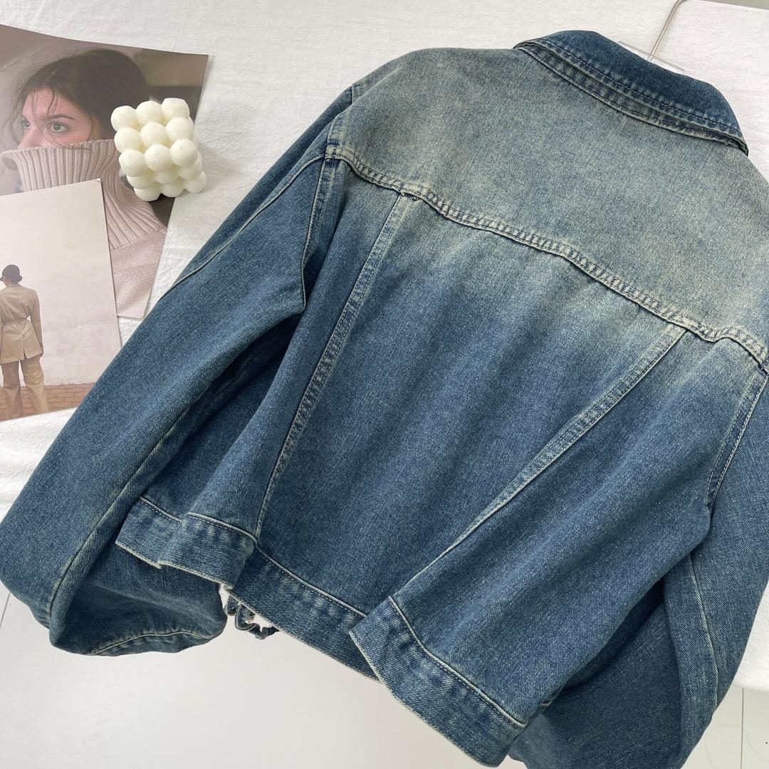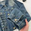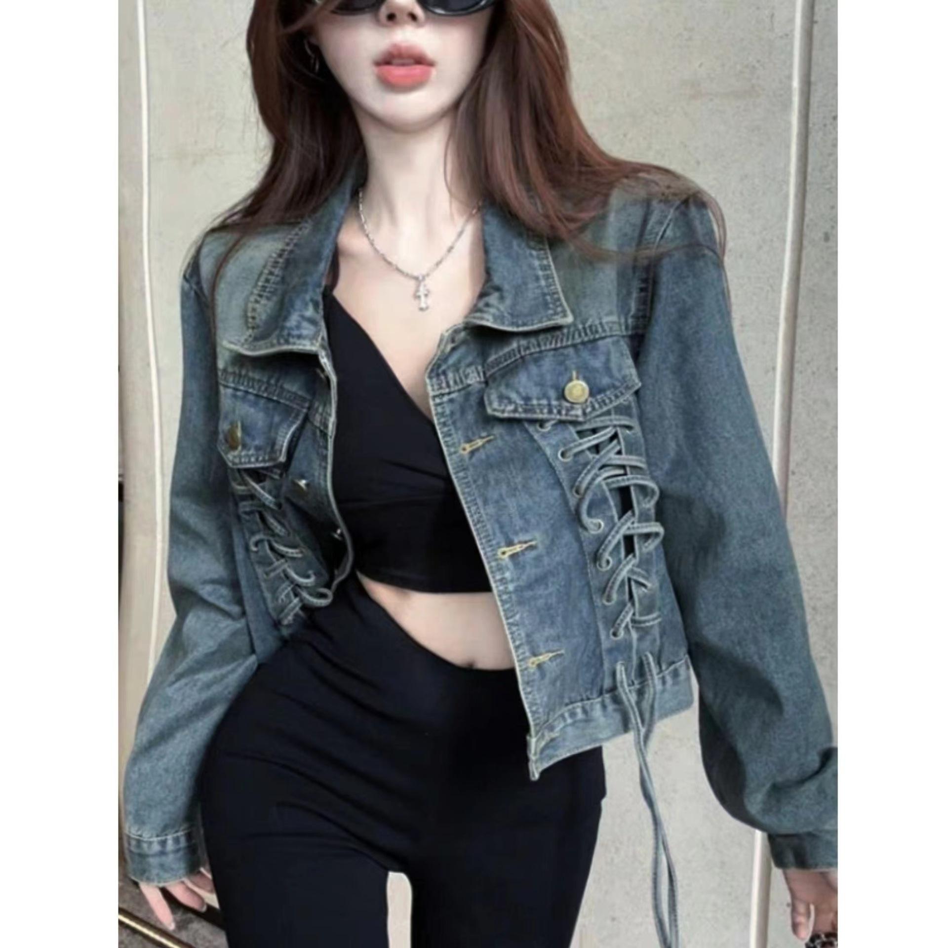 W00628 Abrigo vaquero con cordones estilo americano frito para mujer, otoño e invierno, nuevo, pequeño, suelto, adelgazante, versátil, corto