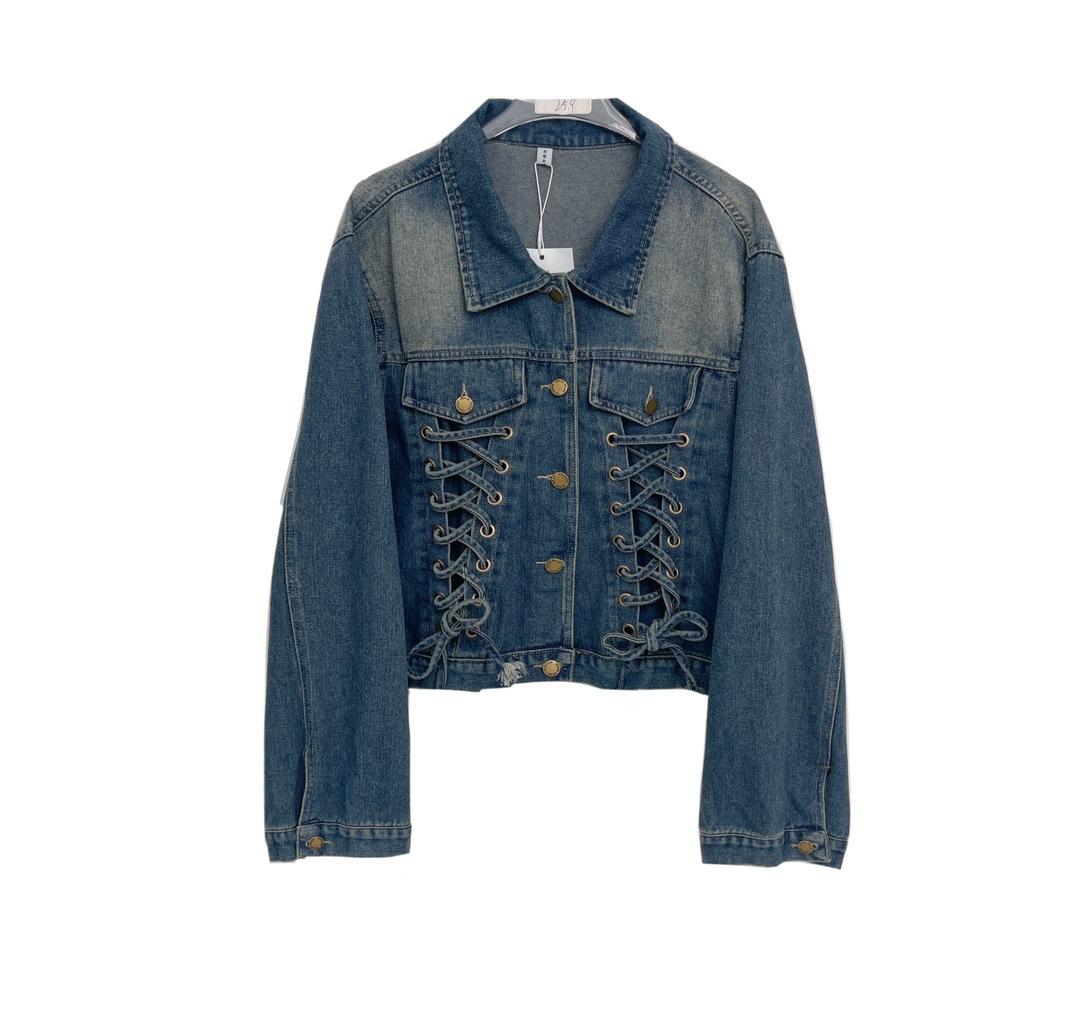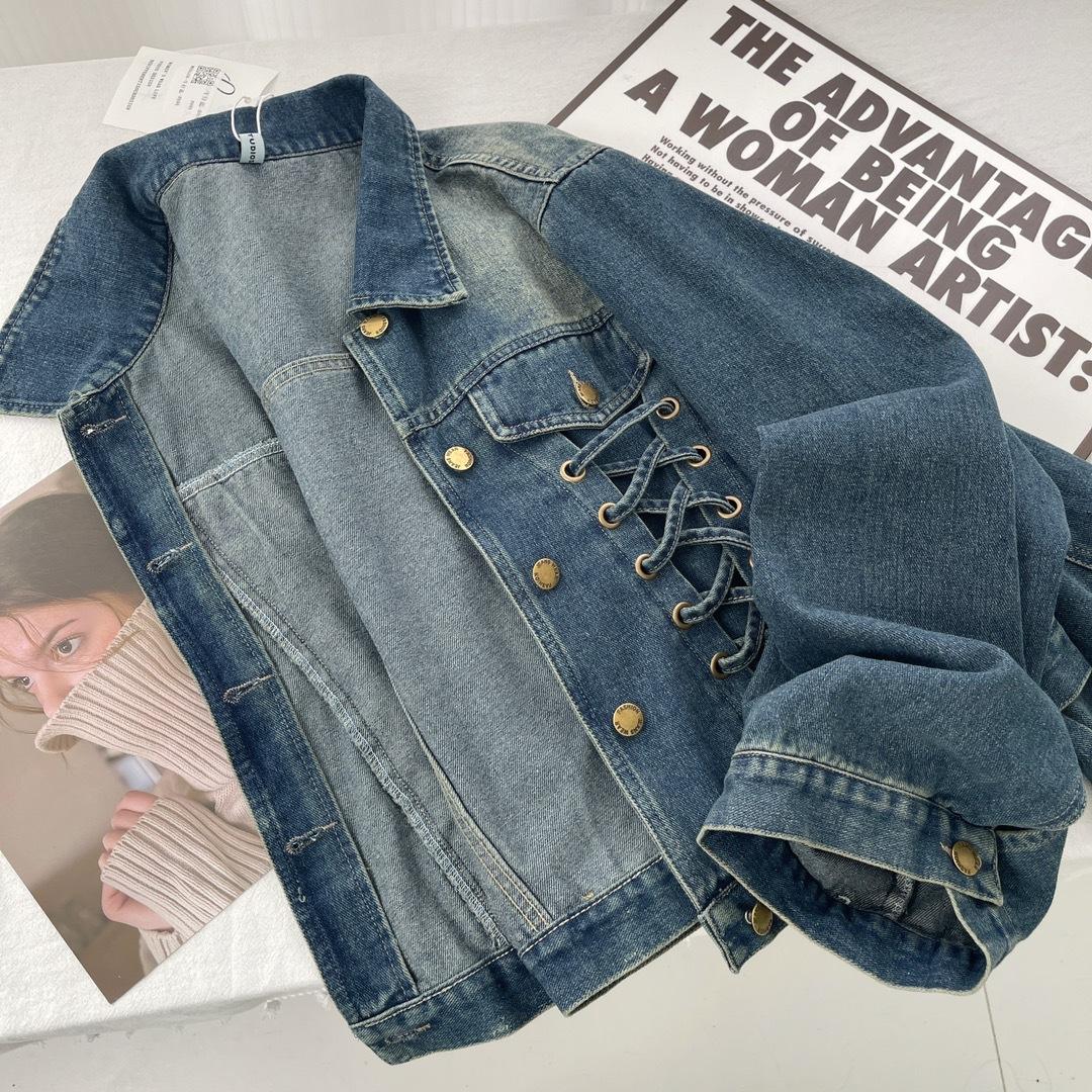 Compra W00628 Abrigo vaquero con cordones estilo americano frito para mujer, otoño e invierno, nuevo, pequeño, suelto, adelgazante, versátil, corto al por mayor en Joom.pro