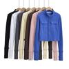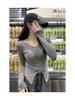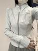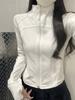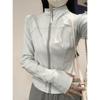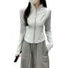 Americano 2025 Otoño Estilo Coreano Ajustado Más Fácil de Combinar Diseño Slim Espina de Pescado Camiseta Cárdigan con Cremallera Top Tops de Mujer