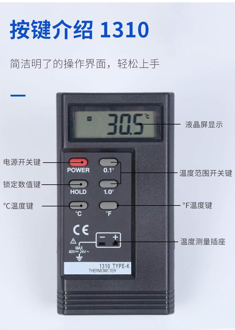 Termómetro electrónico de contacto tipo K portátil 1310, instrumento de medición de temperatura con termopar.