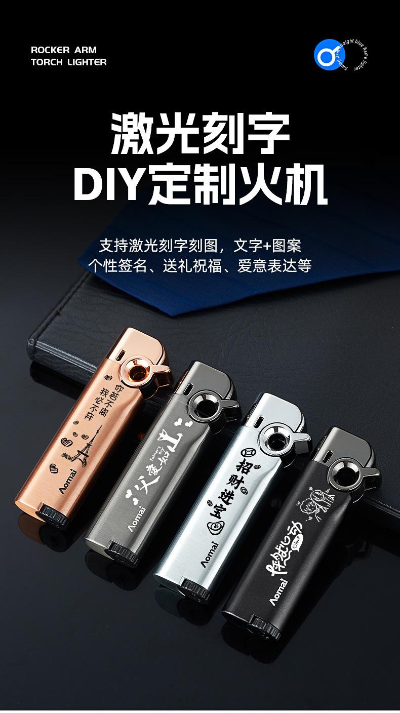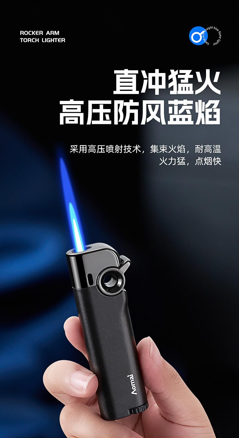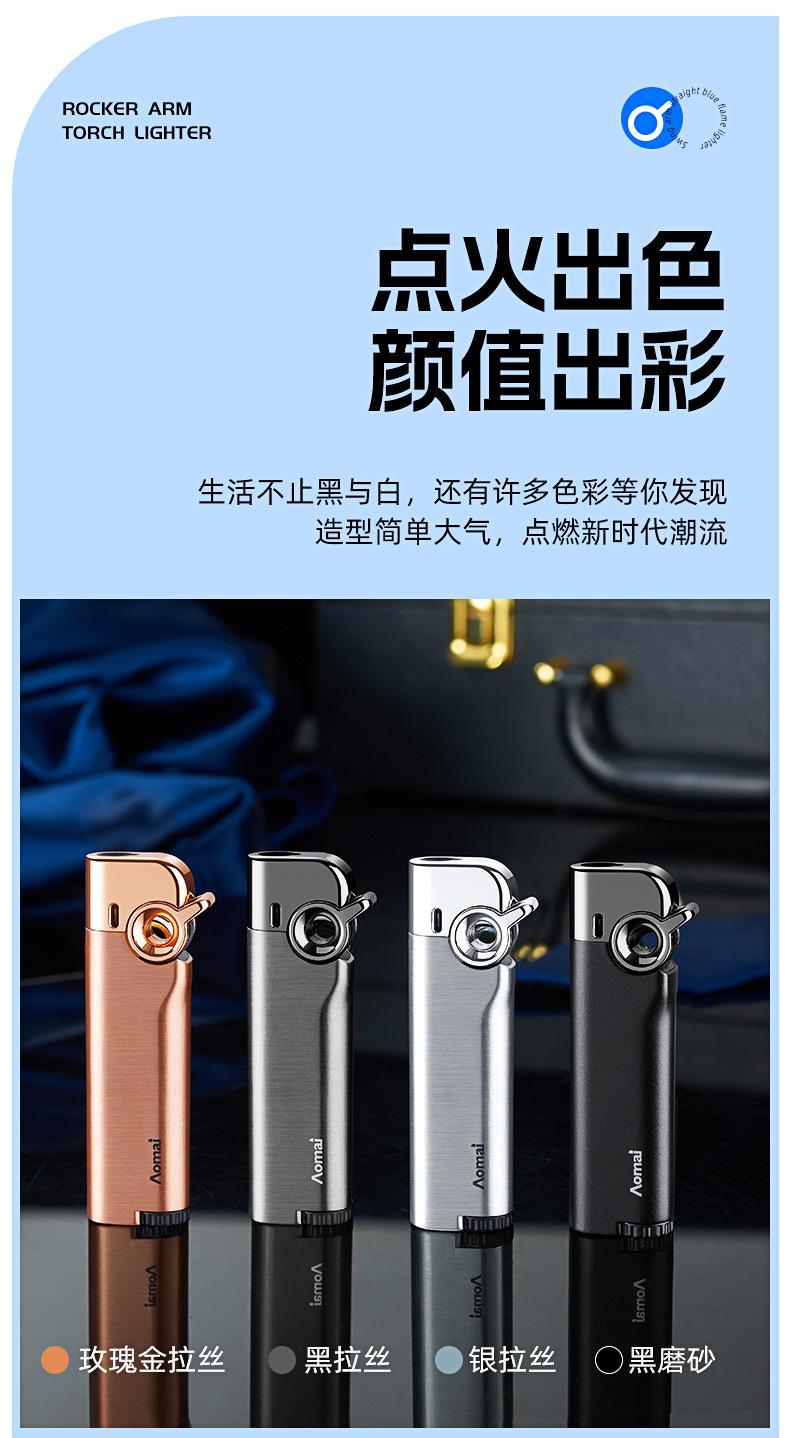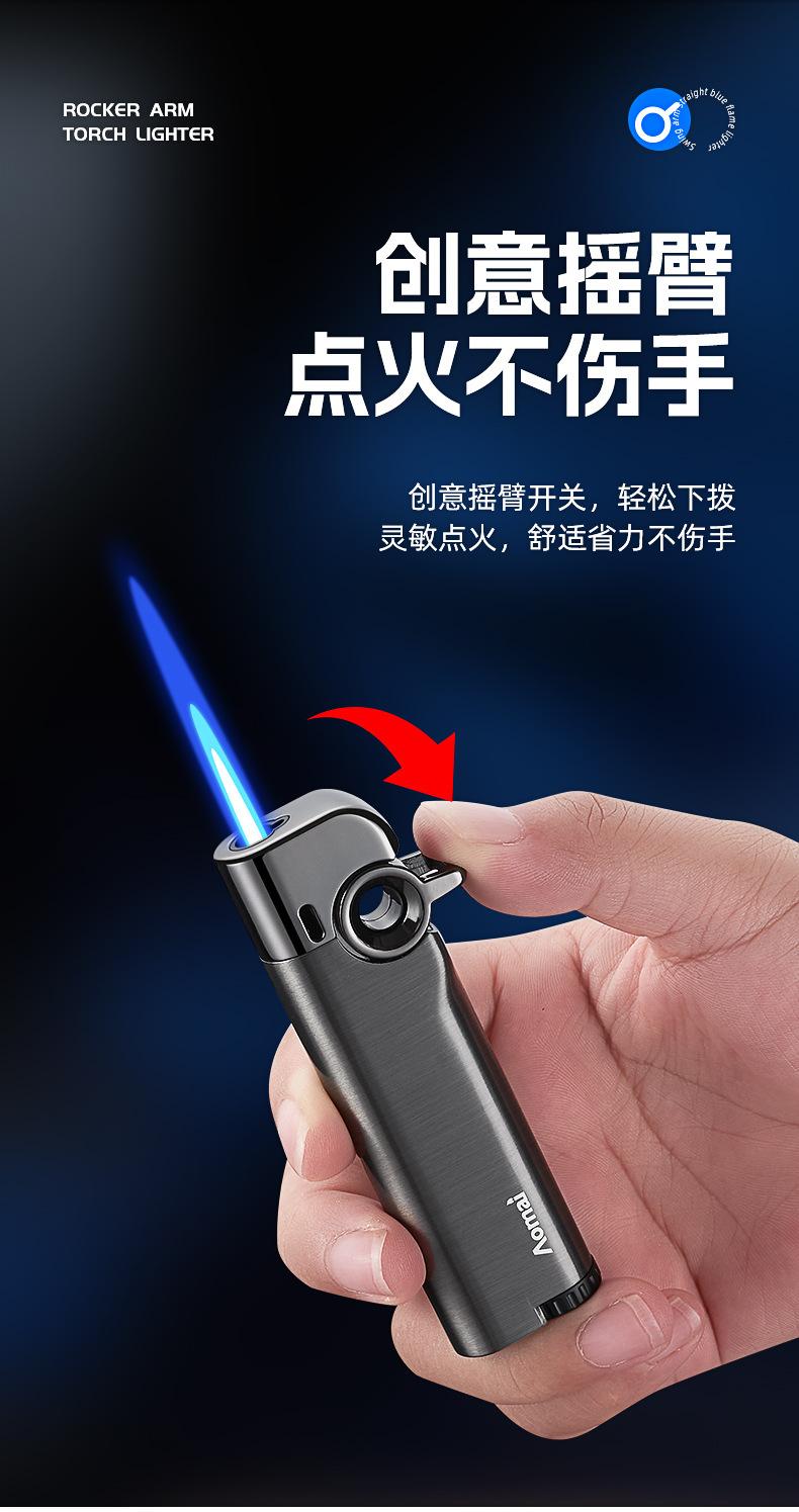 Encendedor inflable de metal con diseño de balancín AM7210, de llama azul, resistente al viento y con trefilado, ideal para fumar.