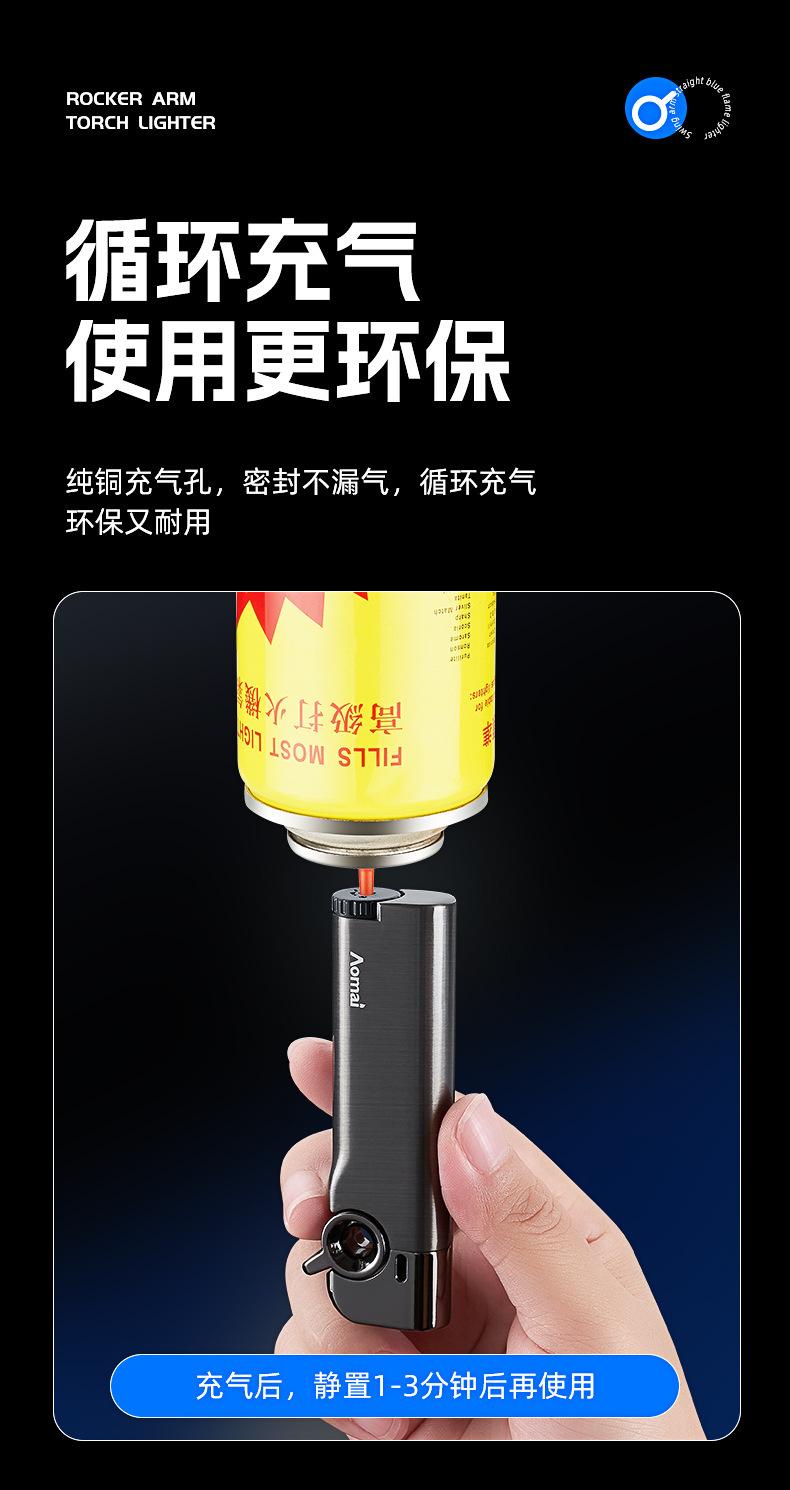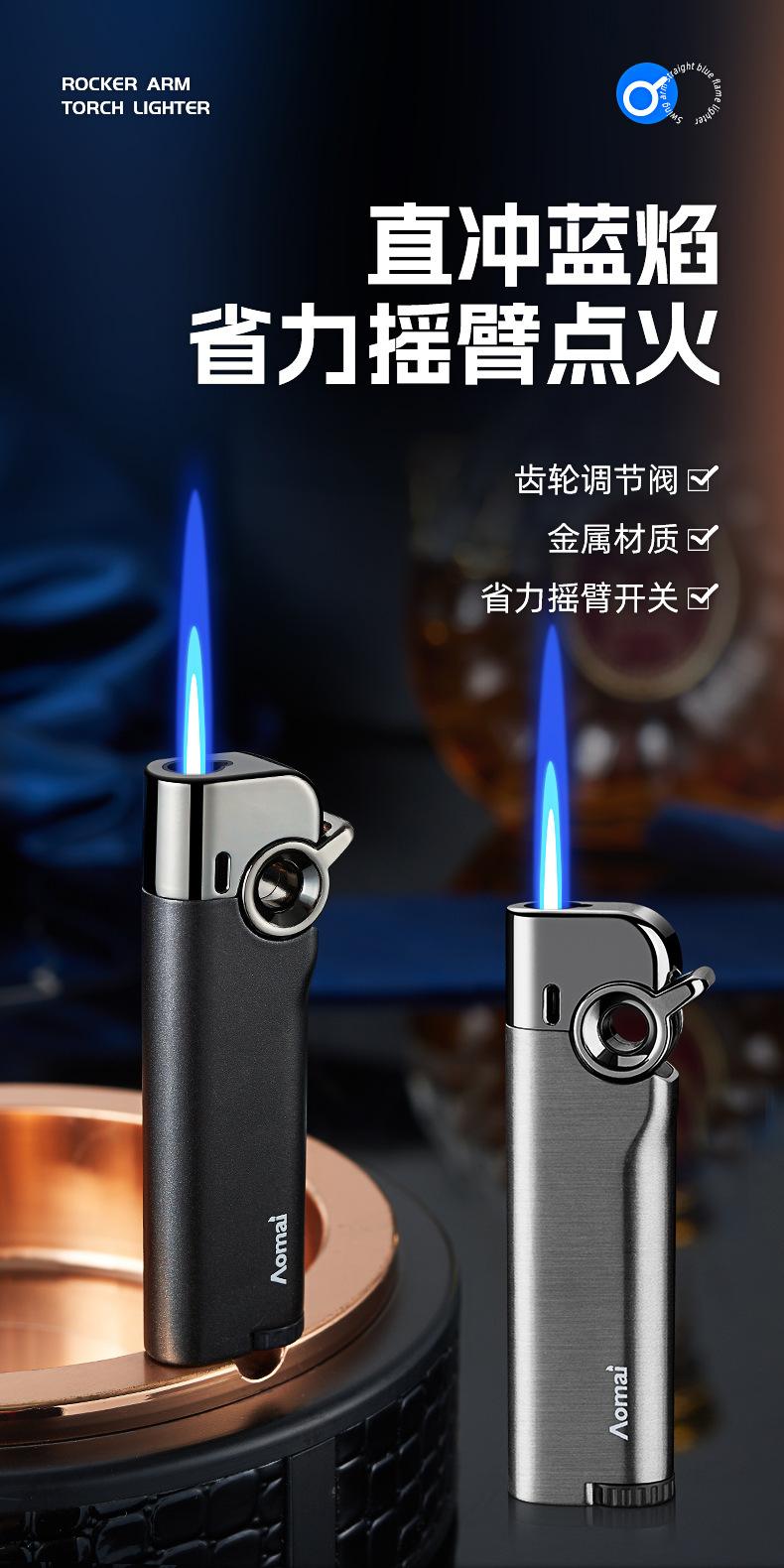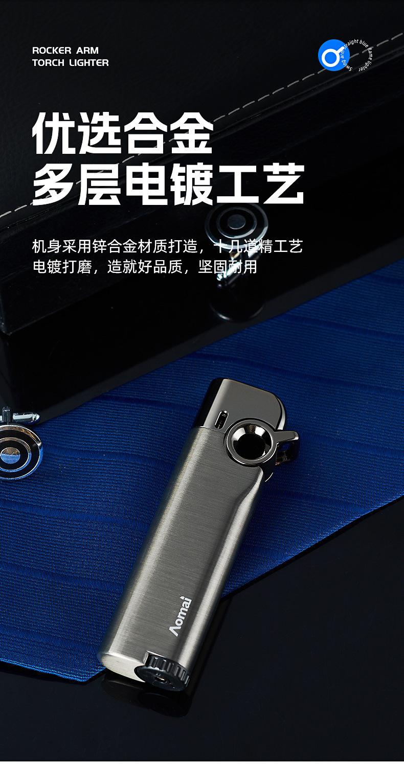 Encendedor inflable de metal con diseño de balancín AM7210, de llama azul, resistente al viento y con trefilado, ideal para fumar.