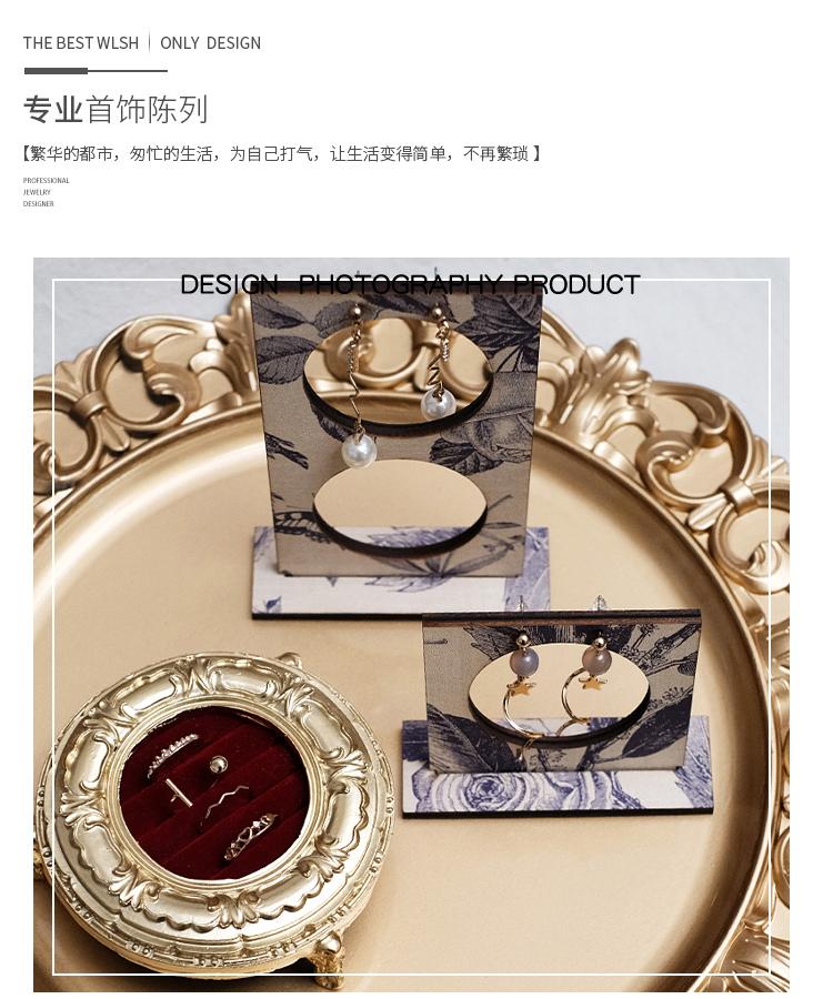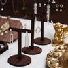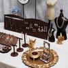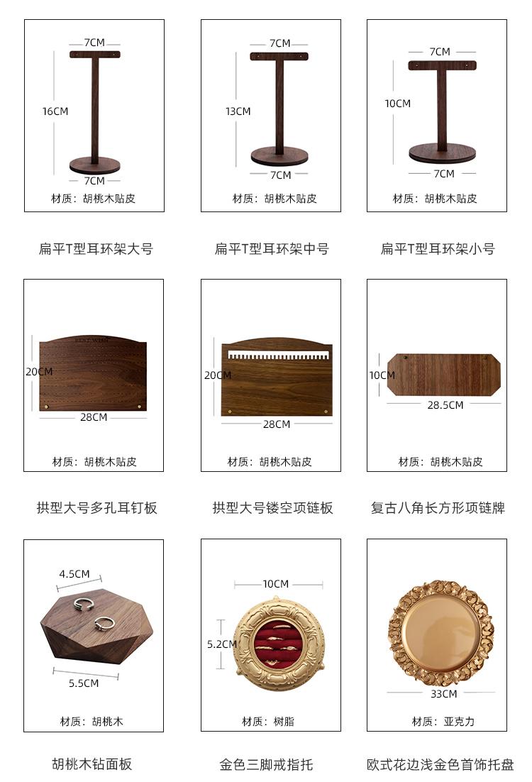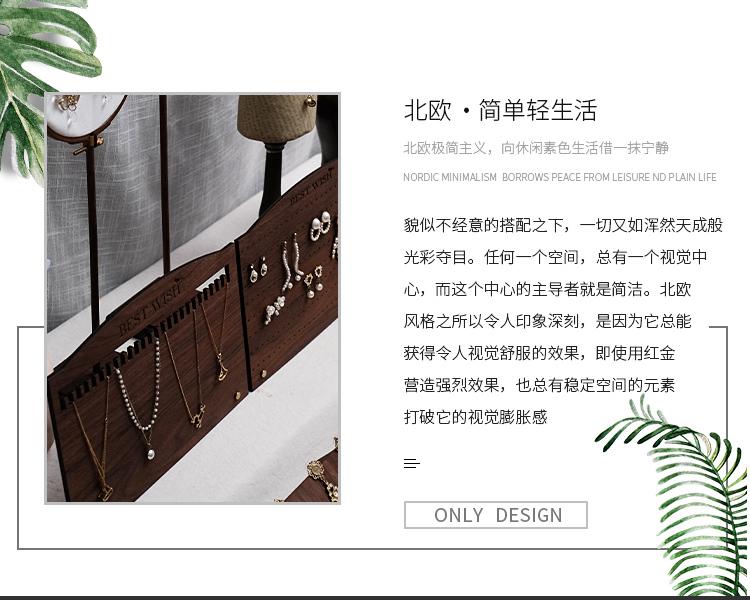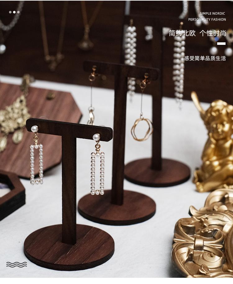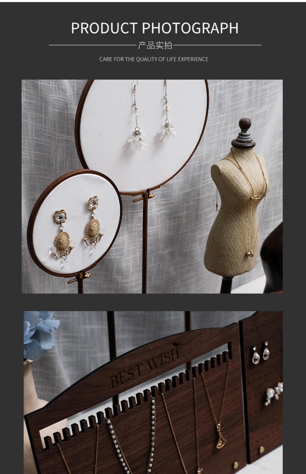 Expositor de joyas de nogal con bordado vertical para pendientes, collares y adornos. Tienda de accesorios para exhibición de fotos en vivo.