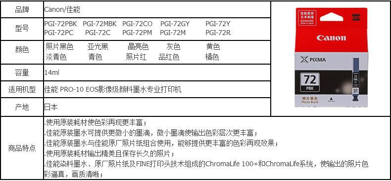 Cartucho de tinta original Canon 72 PGI-72 color negro cartucho de tinta PRO10 tinta para impresora fotográfica PRO-10