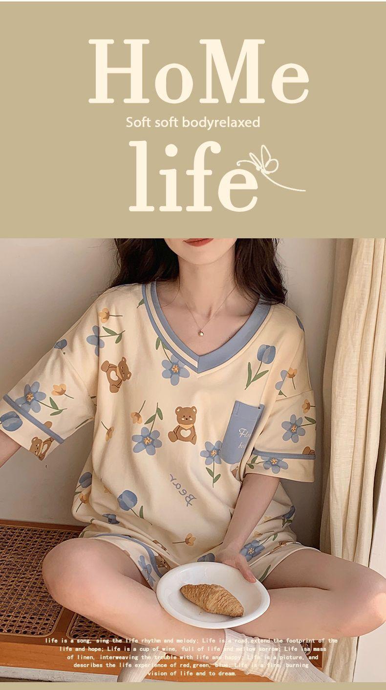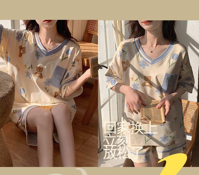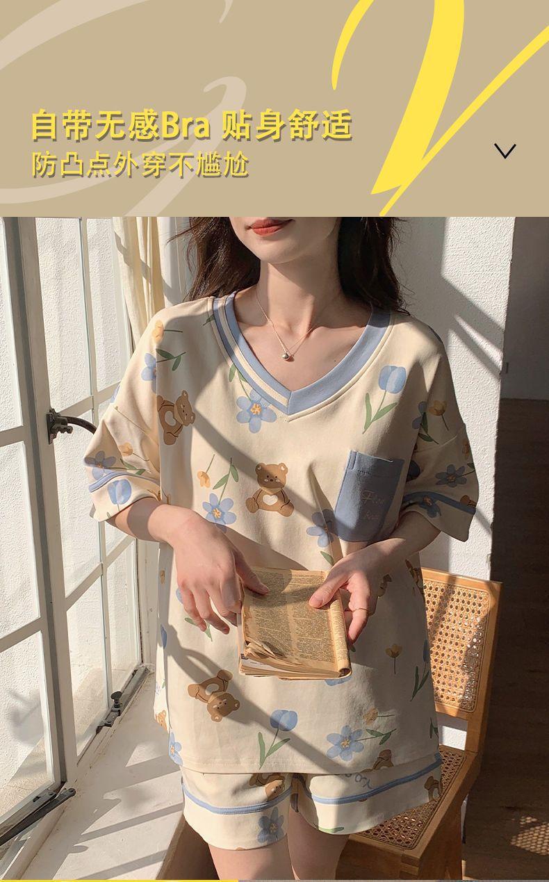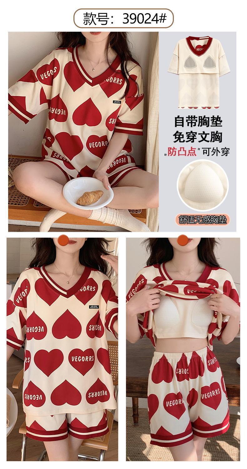 Pijama de verano para mujer con almohadilla para el pecho, 100% algodón, manga corta, pantalones cortos, algodón puro, fino, verano, dibujos animados, ropa para el hogar, traje
