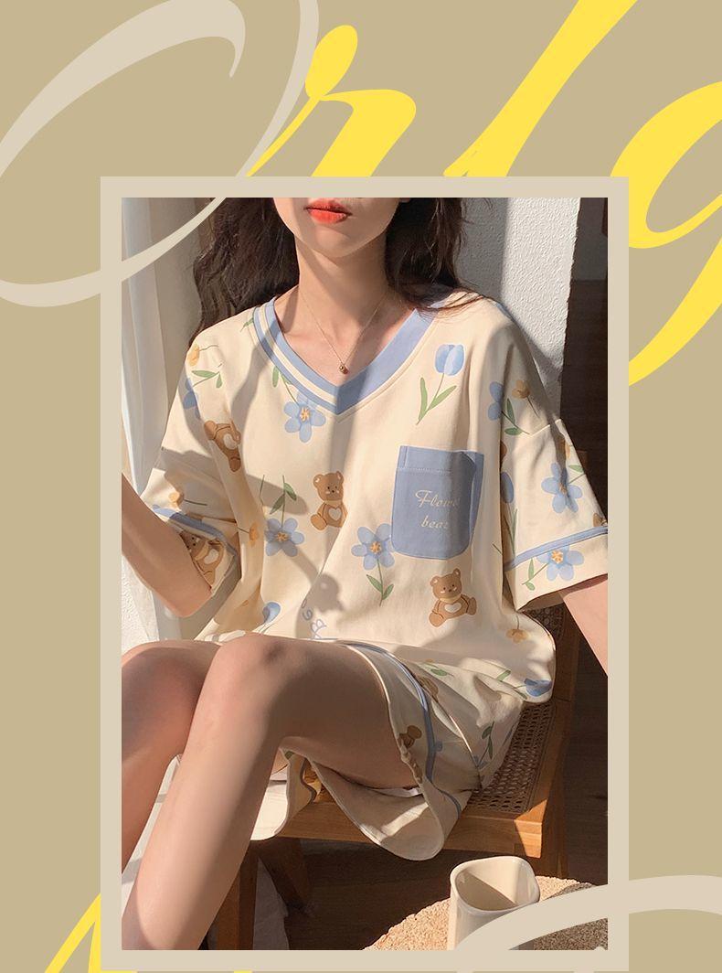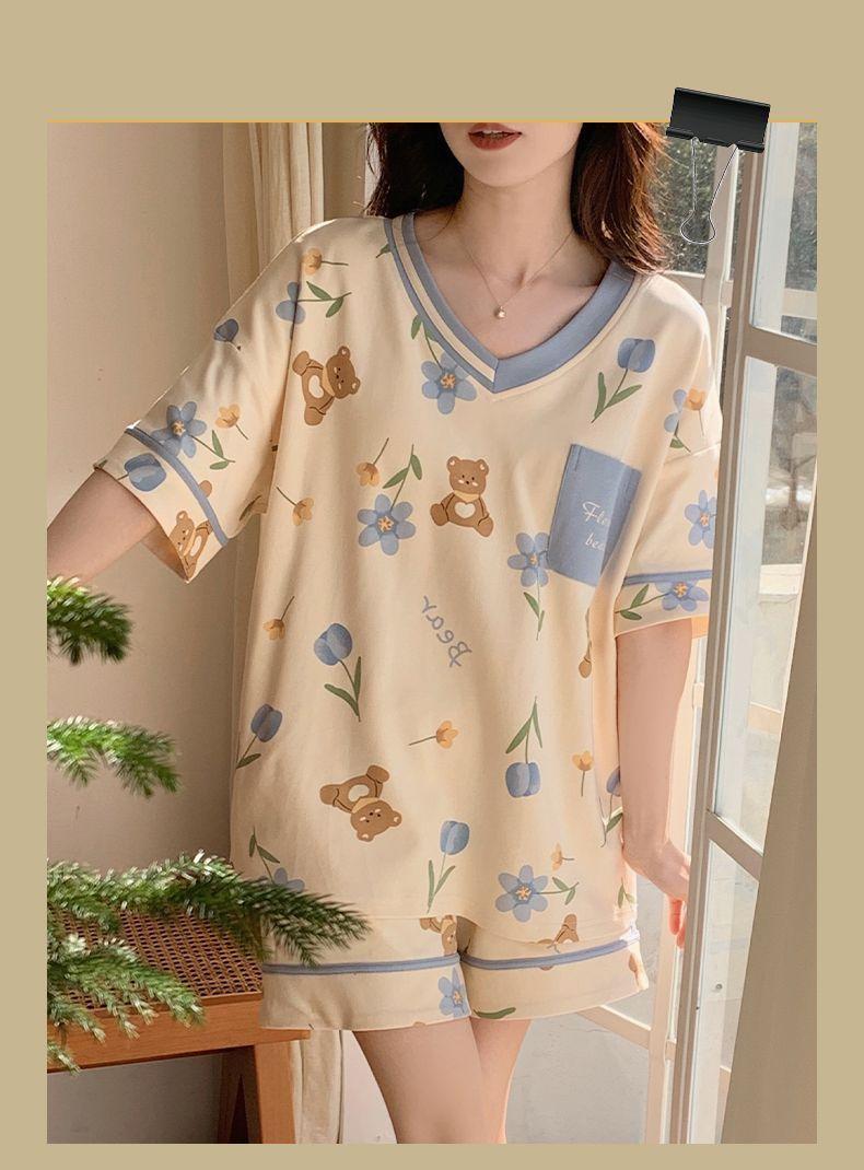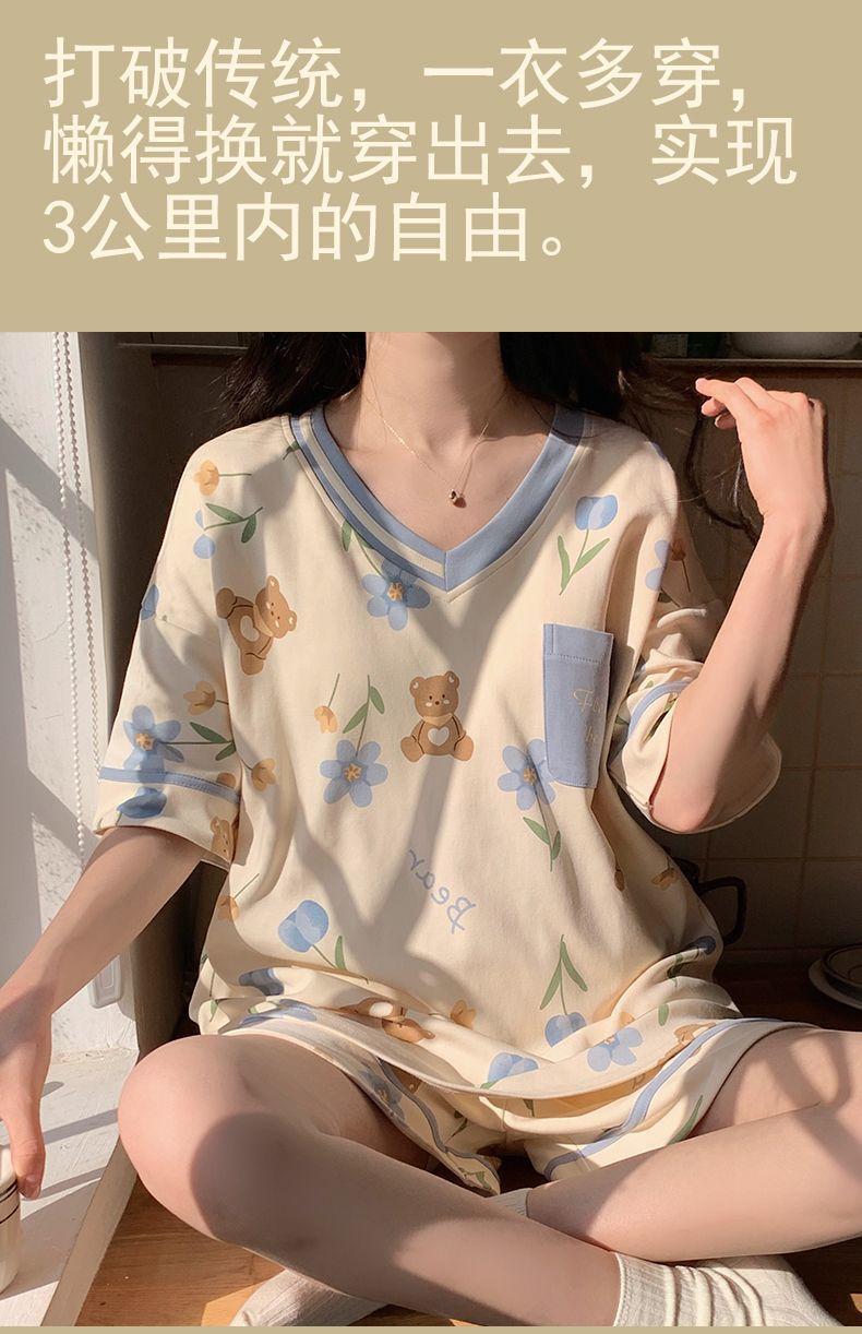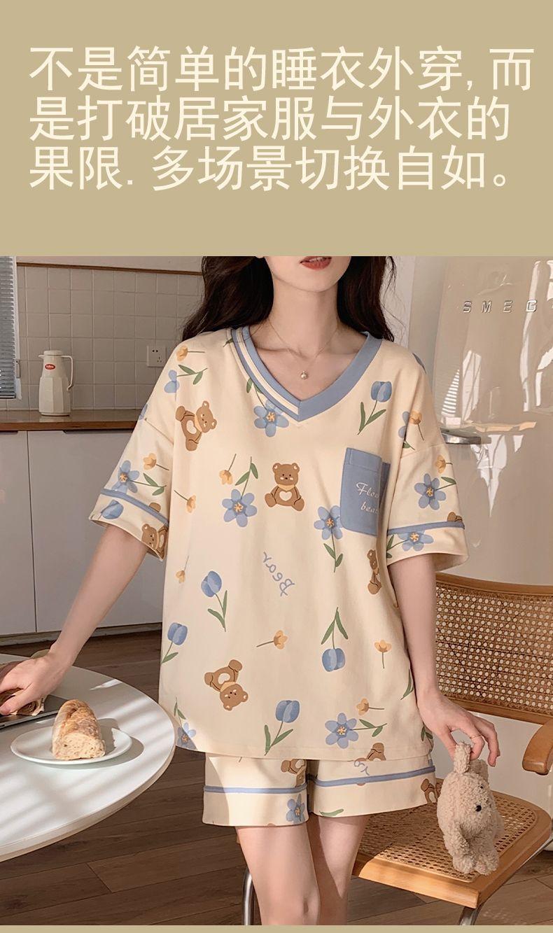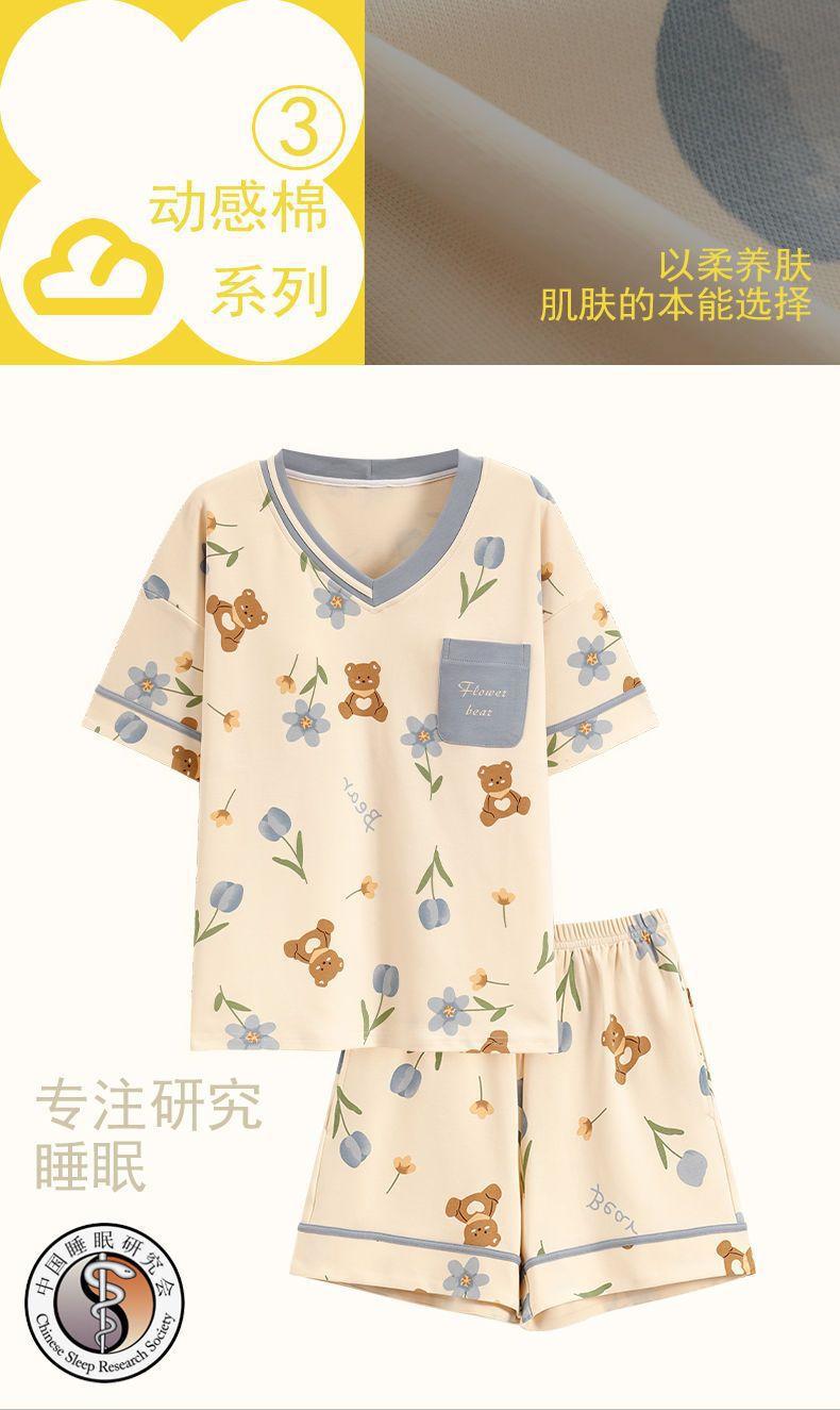 Pijama de verano para mujer con almohadilla para el pecho, 100% algodón, manga corta, pantalones cortos, algodón puro, fino, verano, dibujos animados, ropa para el hogar, traje